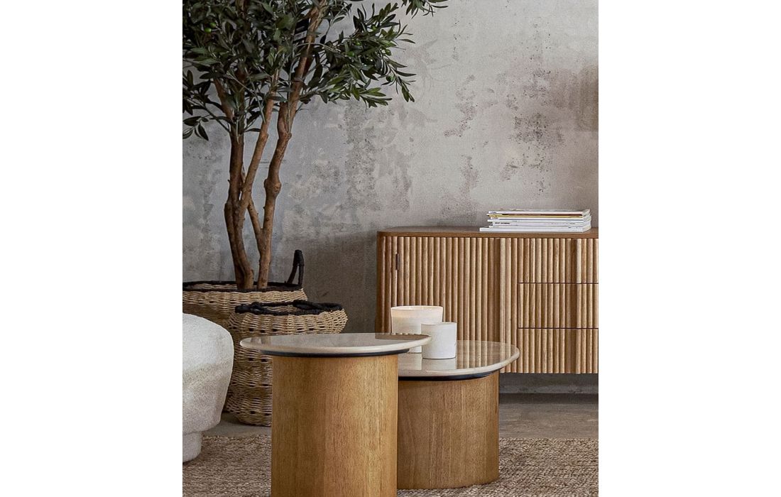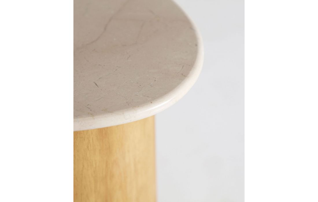 The LORACH SIDE TABLE, with its marble surface and beech wood frame, captures the essence with its elegance and sophistication.