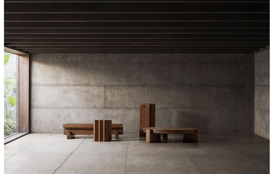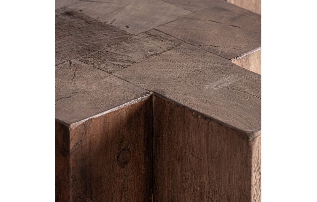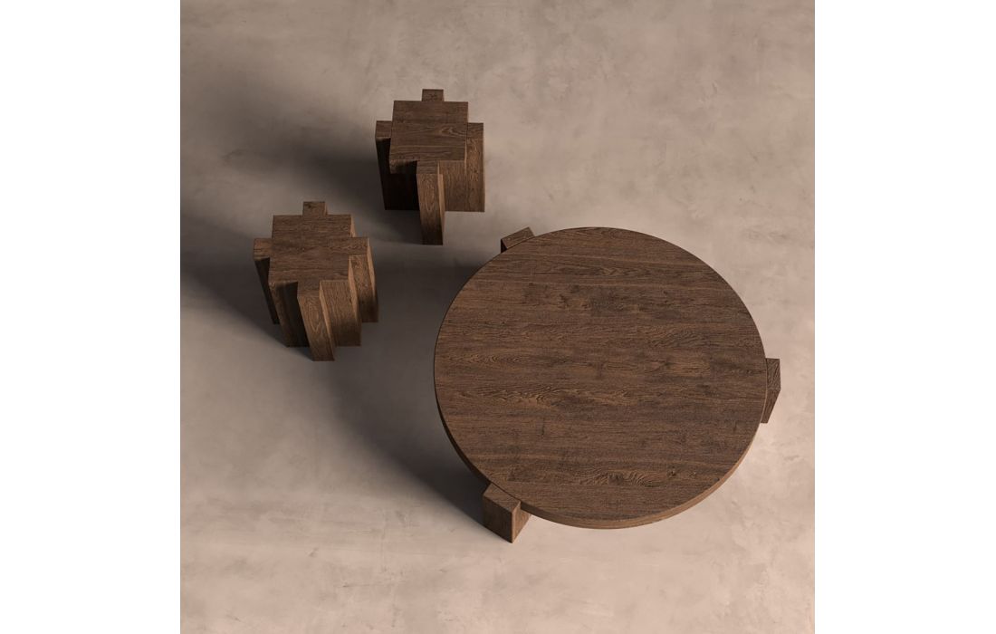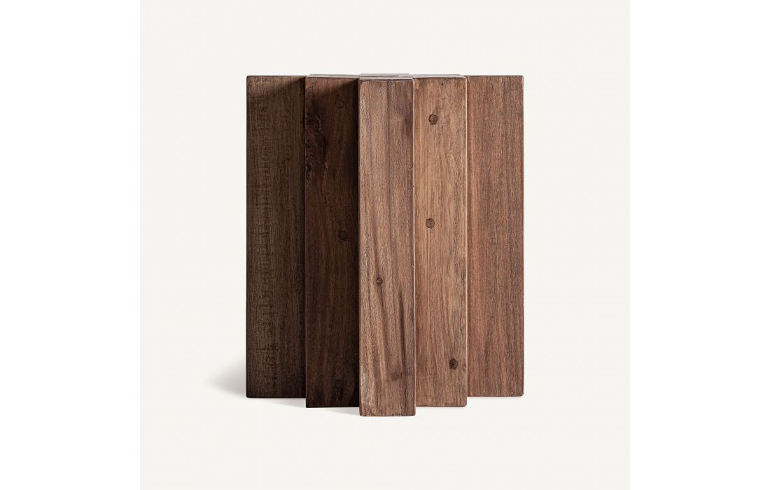 The Brutalist Side Table is solid, vertical, and essential, made of saltwood; its solid form is reminiscent of the modular constructions of Brutalist architecture.