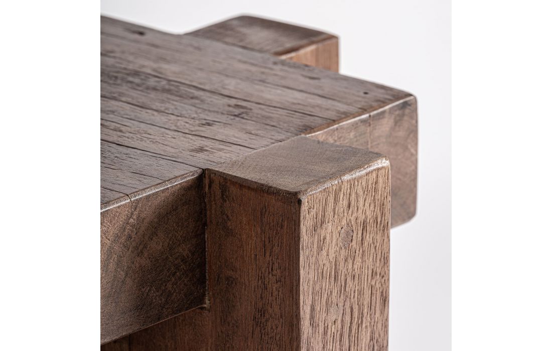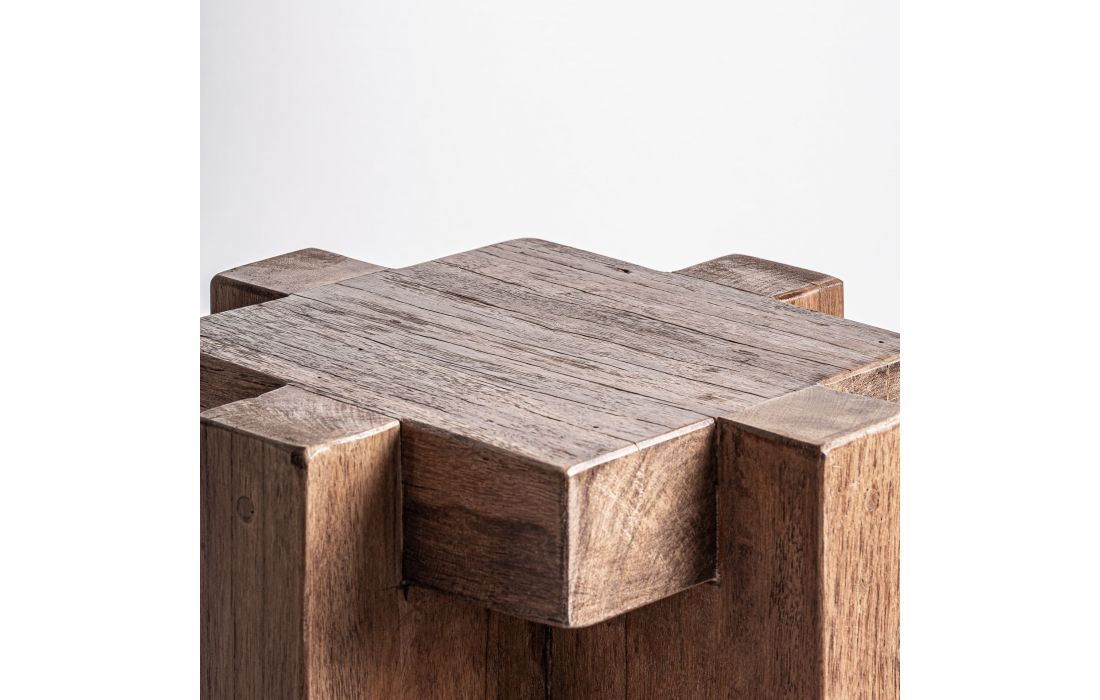 This side table, made of saltwood, is a sculptural piece that completes the aesthetic landscape, functionality, balance, and architectural presence.