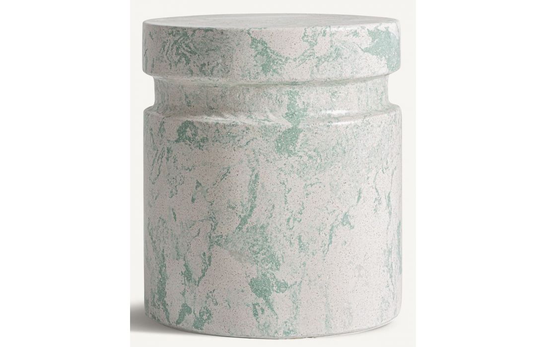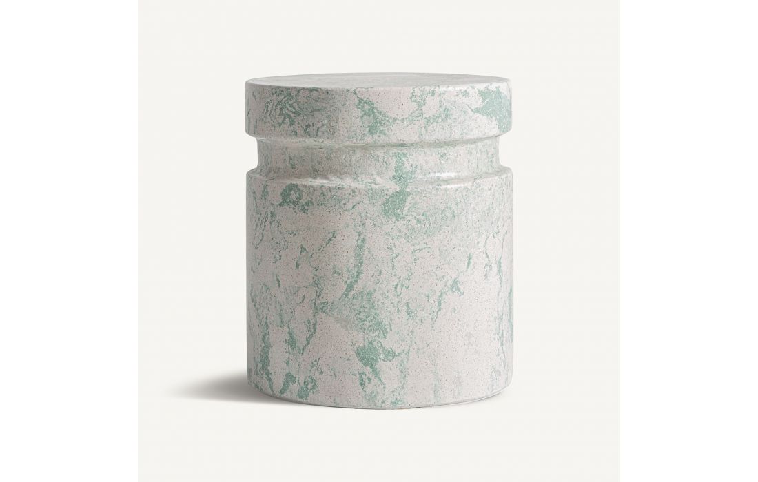 The ÁGUA side table, in a contemporary style and made of terrazzo, combines functionality, balance, and architectural presence.