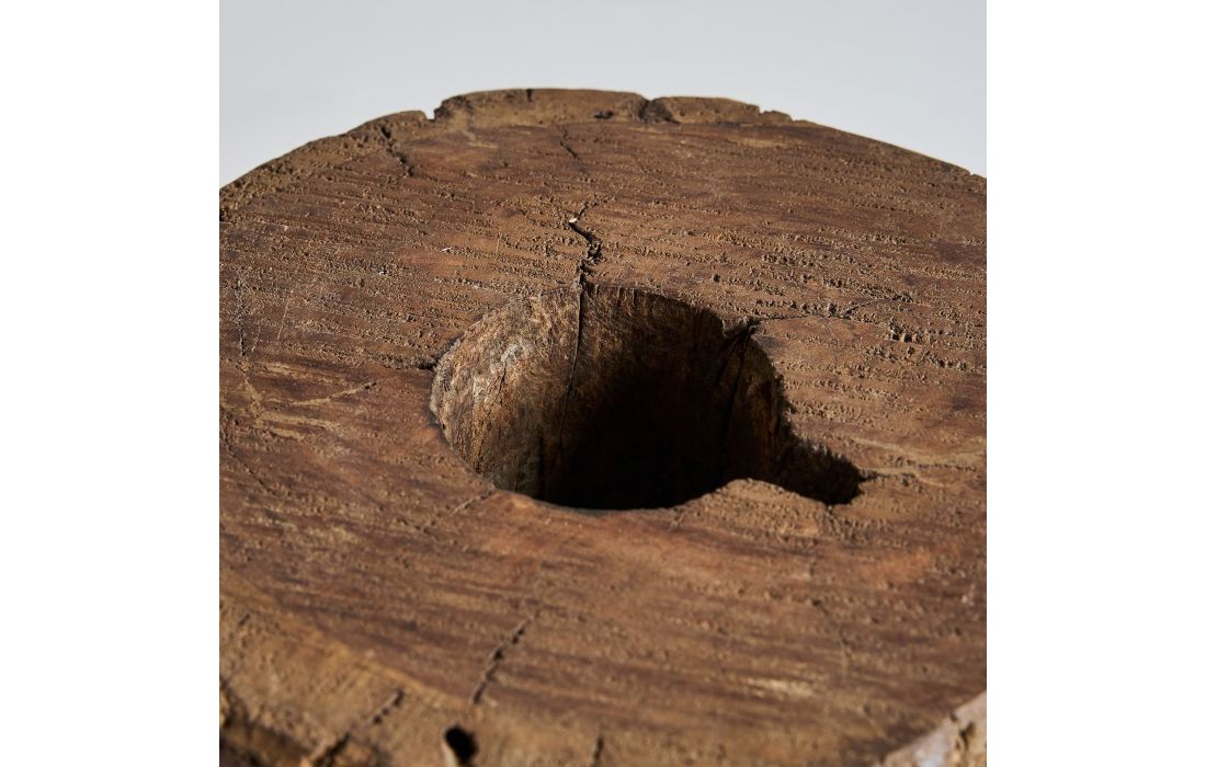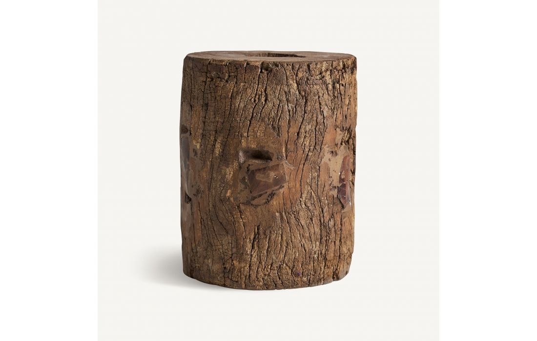 This side table embraces rustic beauty with its aged mango wood and natural texture, bringing warmth to any space.