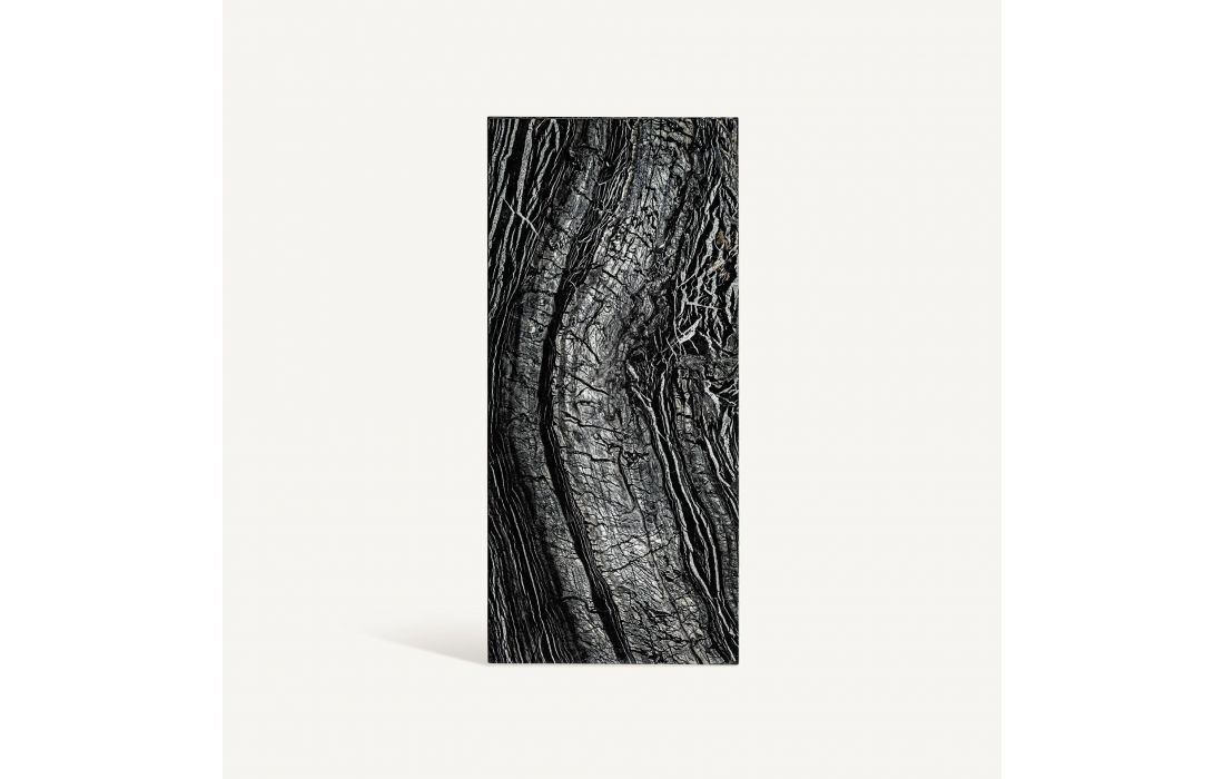 This side table, carved from grey marble, stands out for its shape and sculptural presence, bringing an artistic and sophisticated touch to the atmosphere.
