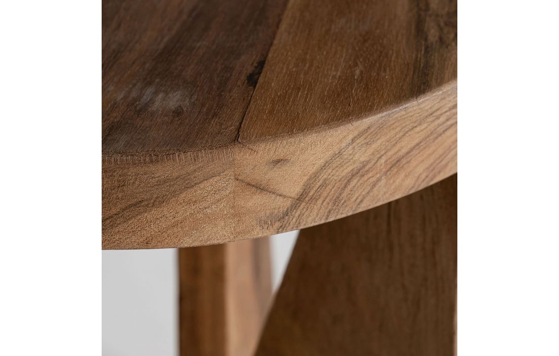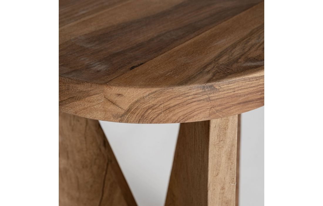 This side table, made from reclaimed wood, offers a serene Nordic aesthetic. Its understated design and natural finish make it a functional piece that conveys calm and authenticity.