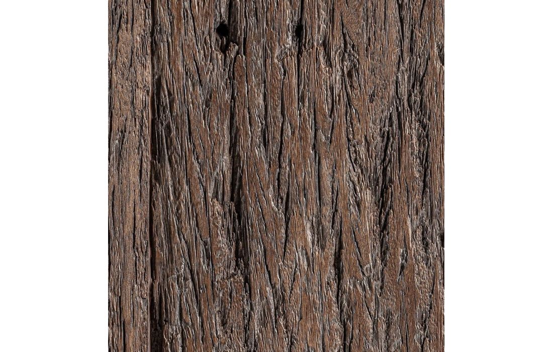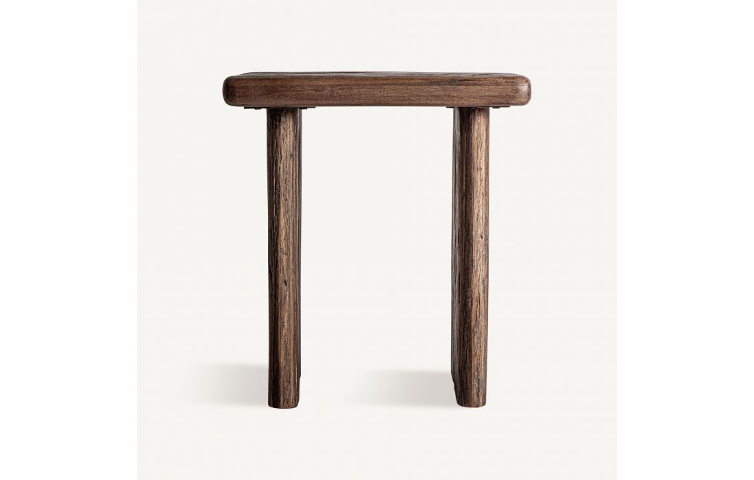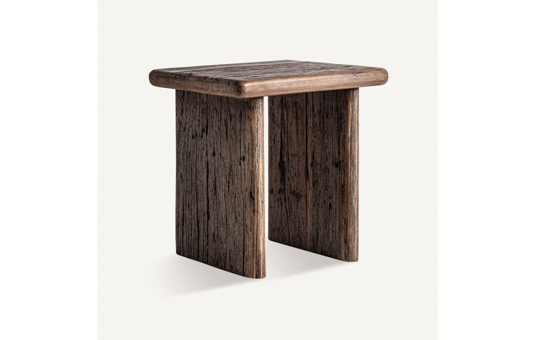 This side table stands out for its aged finish that highlights the texture of the tropical wood.Its contemporary design and organic character make it a versatile piece, ideal for adding warmth to any space.