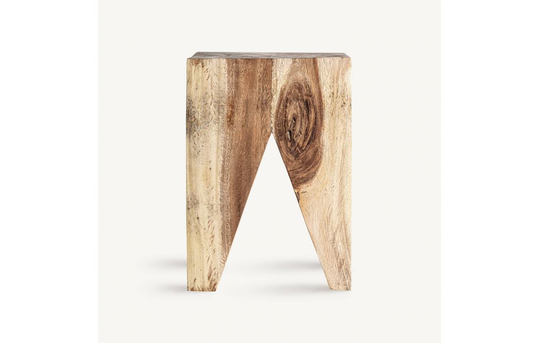 This side table preserves the essence of suar wood with a more organic design. Its finish and sculptural form make it a decorative element with personality.