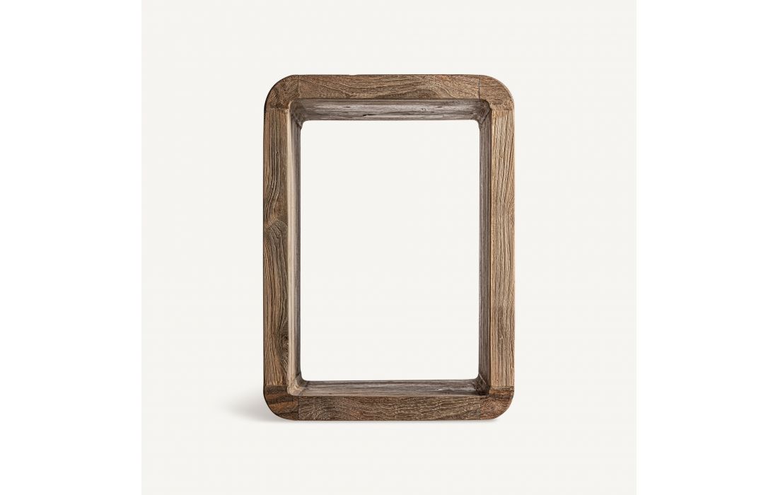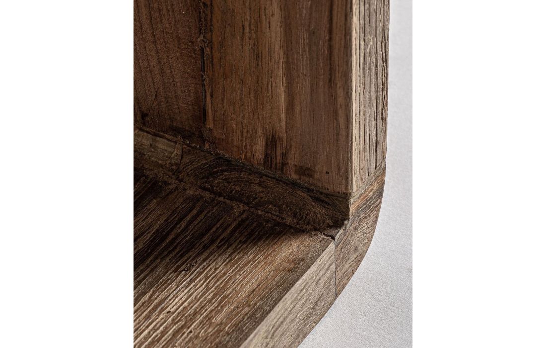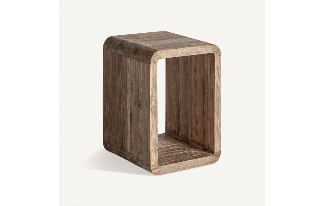 Side table made from recycled teak wood, with a minimalist design and smooth lines. The robust structure and open design provide functionality; this table adds authenticity and sustainable charm to any environment.