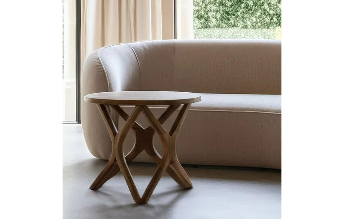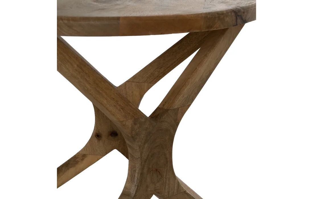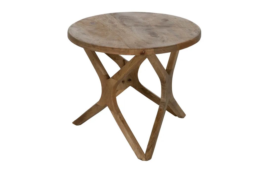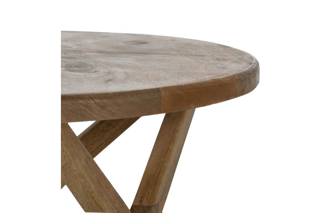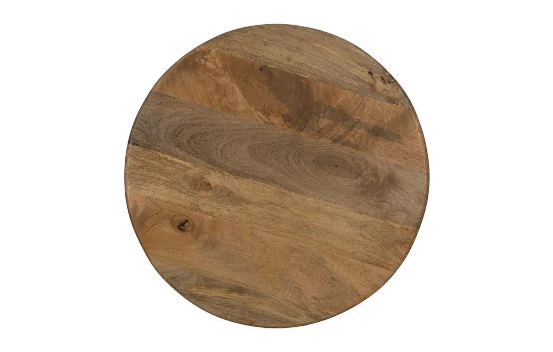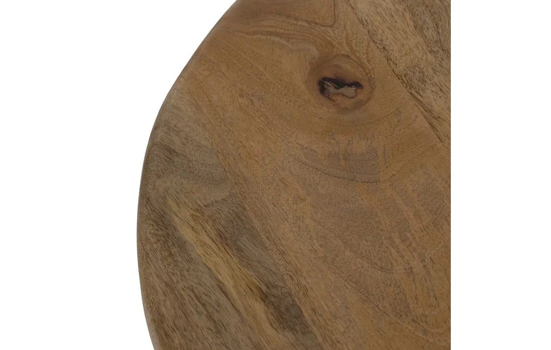 Side table with a round mango wood top, distinguished by its simple and natural aesthetic. The unique wood grain lends character and authenticity, making each piece one-of-a-kind.Recipient :