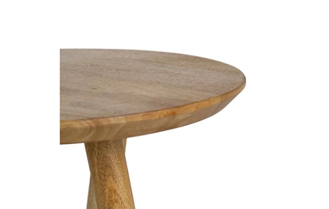 Side table in mango wood, with a minimalist design and round top. Lightweight and sturdy structure with simple, modern lines. Ideal for complementing any environment, offering functionality with a natural and elegant touch.Recipient :