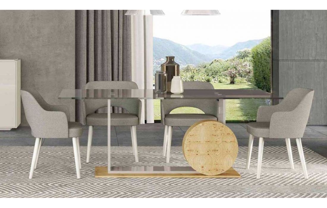 Fixed dining table made of mdf and wood sheet with glass top.Recipient :