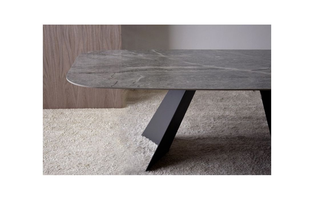 Dining table with ceramic top, finished in marble in shades of gray and color structure of graphite metal.Recipient :