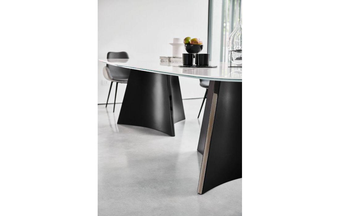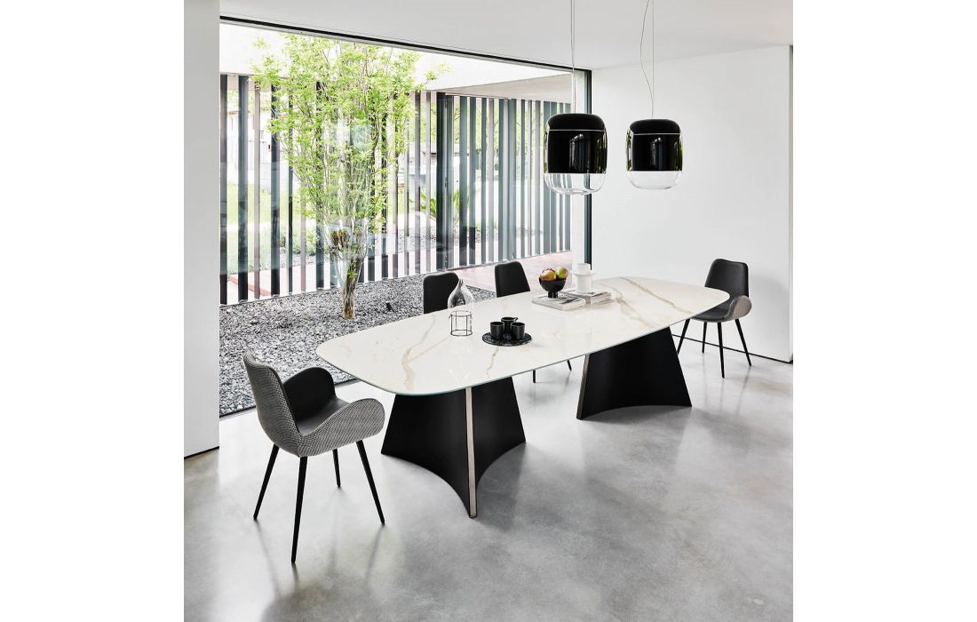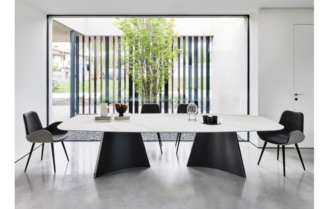 Dining table with ceramic top and metal base, available in different structure colors and finishes.Recipient :