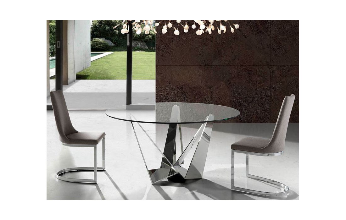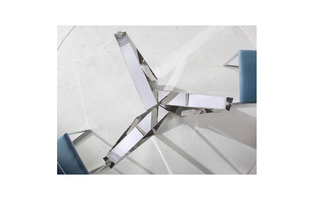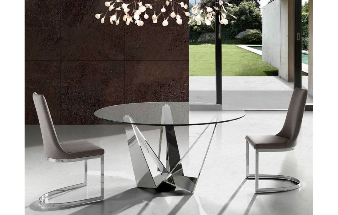 Round table with stainless steel legs and tempered glass top