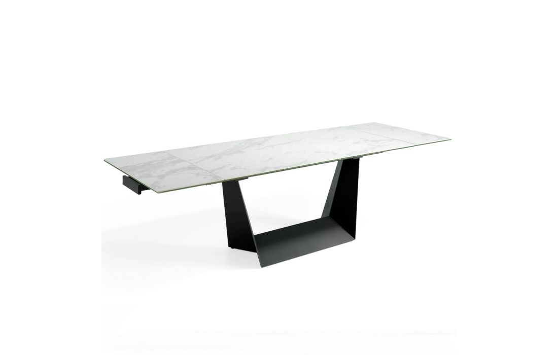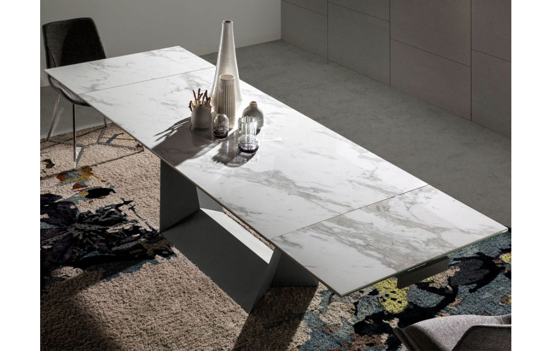 Modern rectangular extendable dining table with glossy marble top and stainless steel legsRecipient :