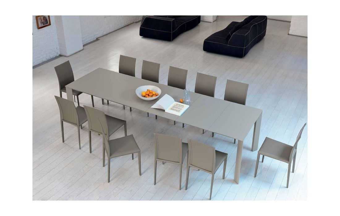 | Table with top in MDF lacquered with structure in steel painted and 3 extensions in MDF lacquered | ||||||||