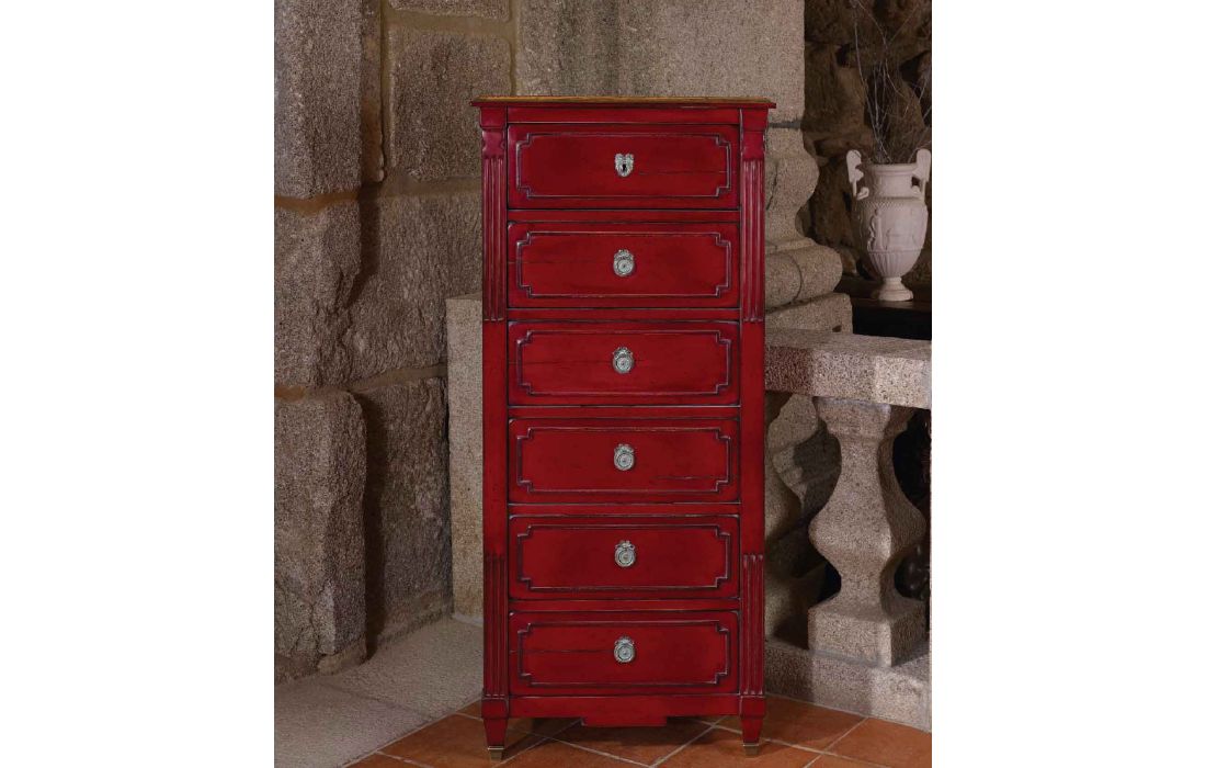 Haberdasher high with 6 drawers, Provencal design, detail in gold leaf and with the possibility of several finishes.