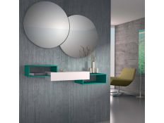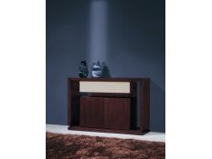 Oak Console with "Delicate Gray" gray glass shelf and touched stainless steel feet.