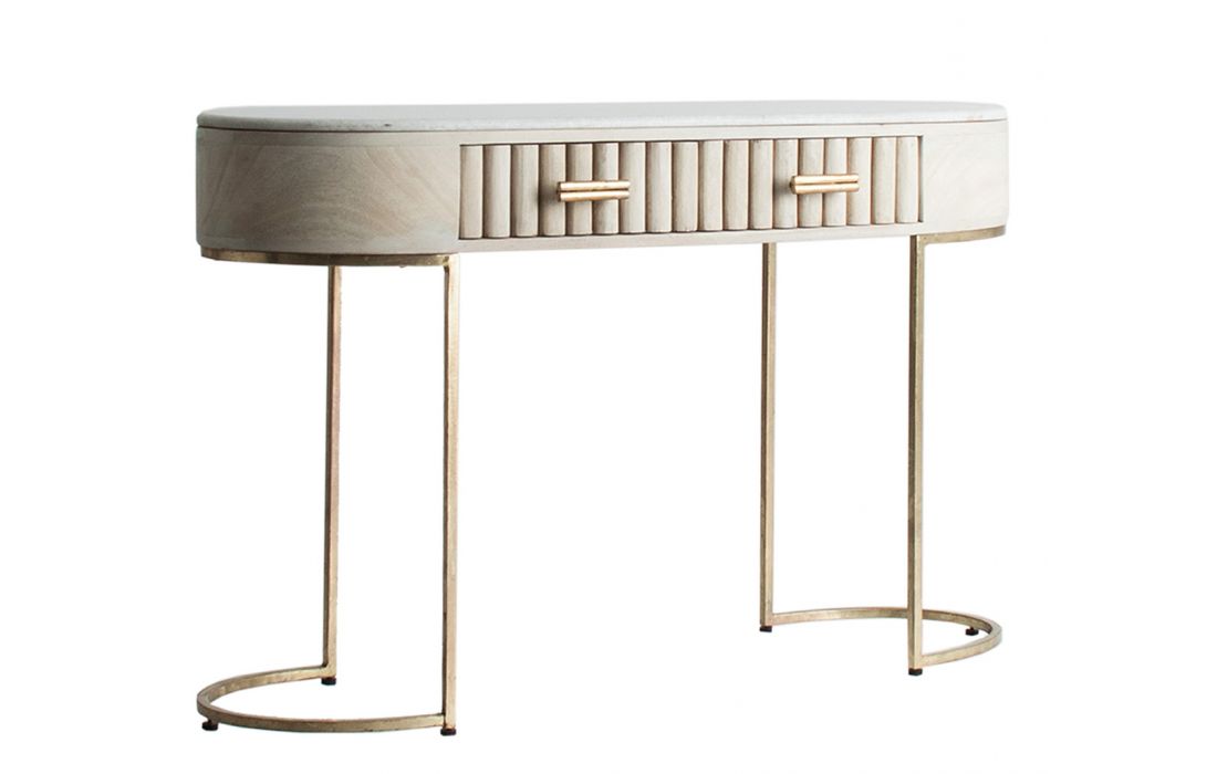 Console in gold and cream color, made of mango wood, steel and bronze.
