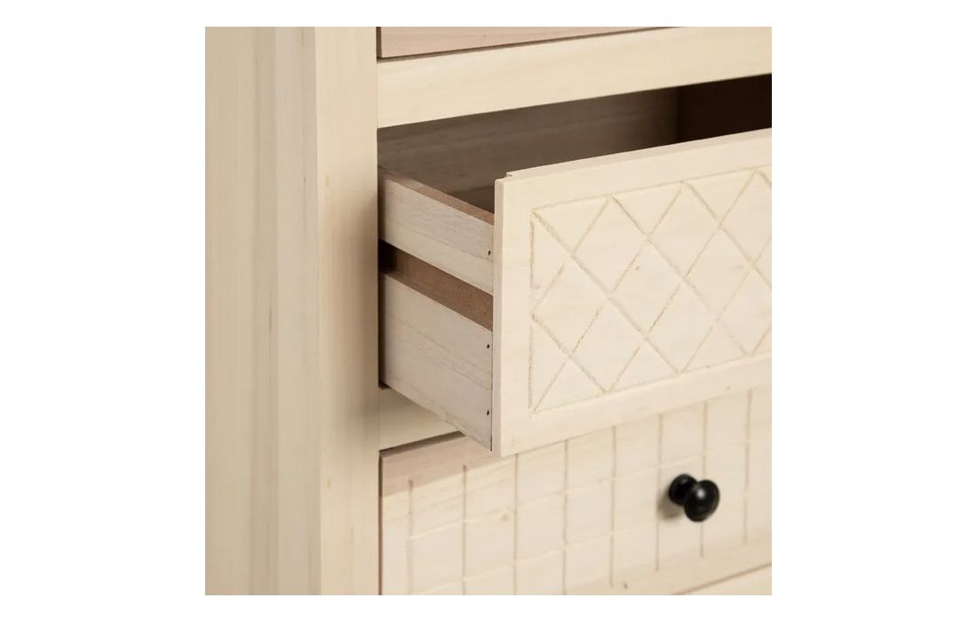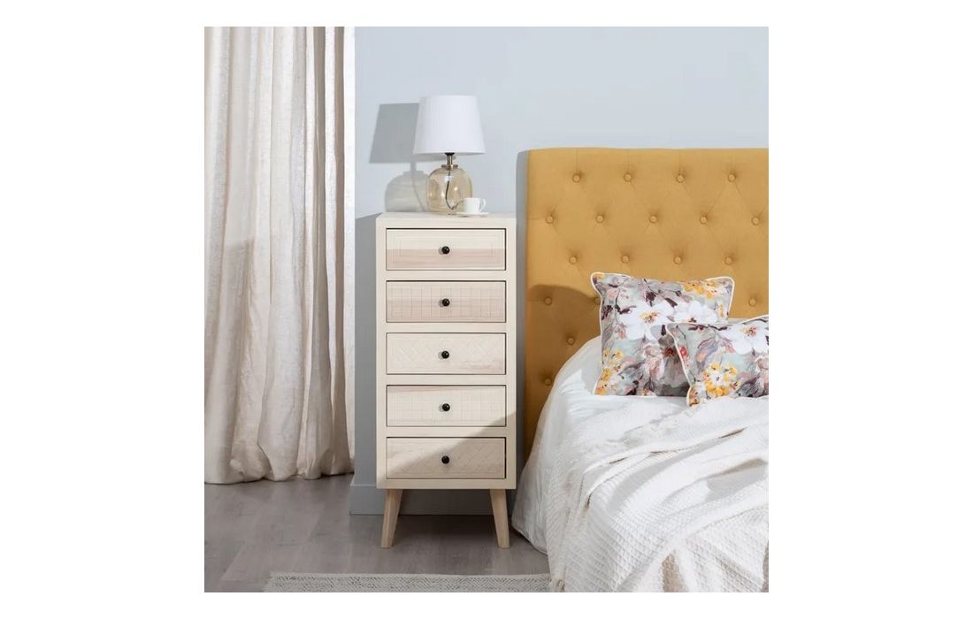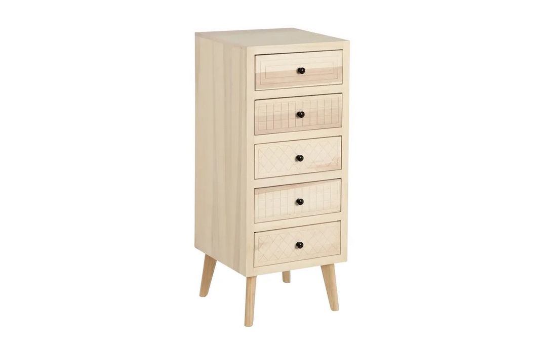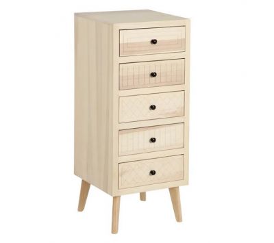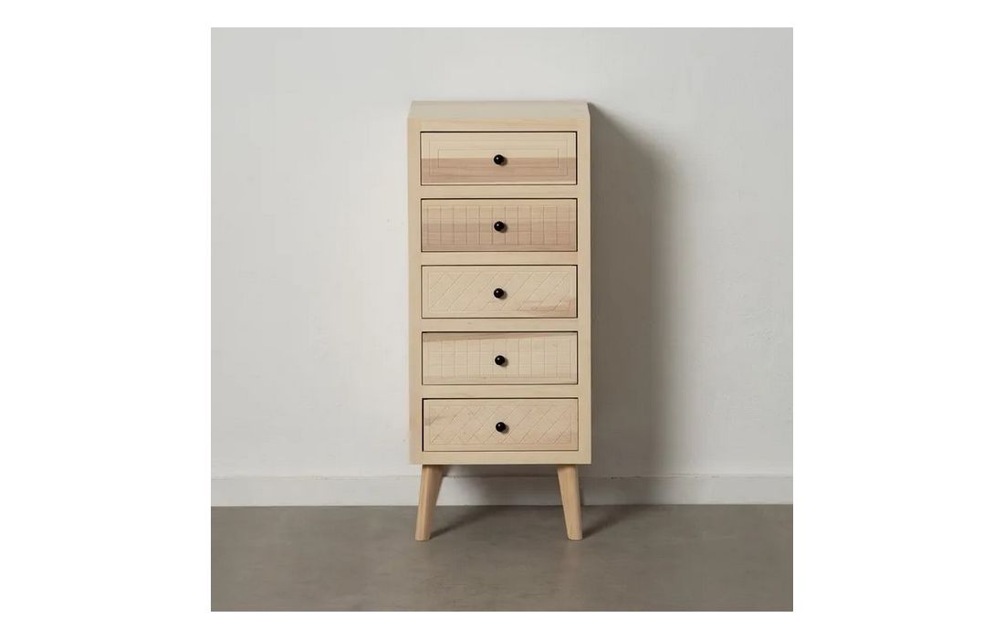 Chest of drawers in poplar wood and mdf, in natural color, with 5 drawers.Dimensions in cm