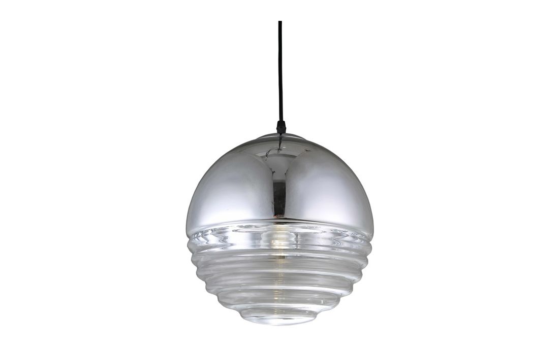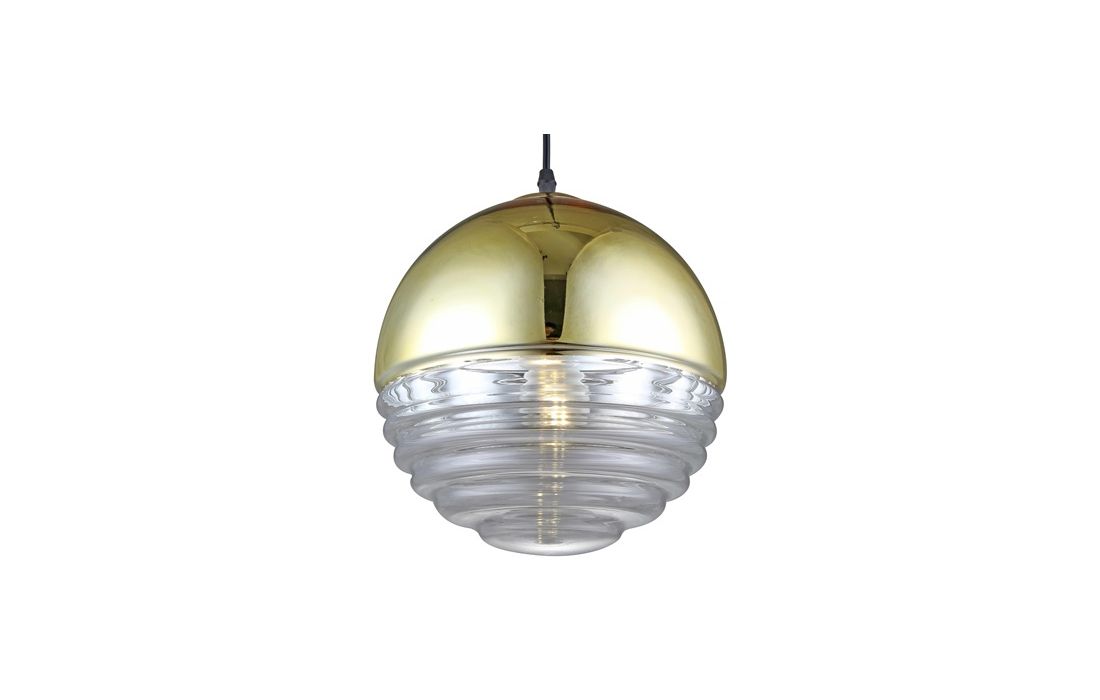 Ceiling lamp in metal of gold, silver or bronze color with clear glass.