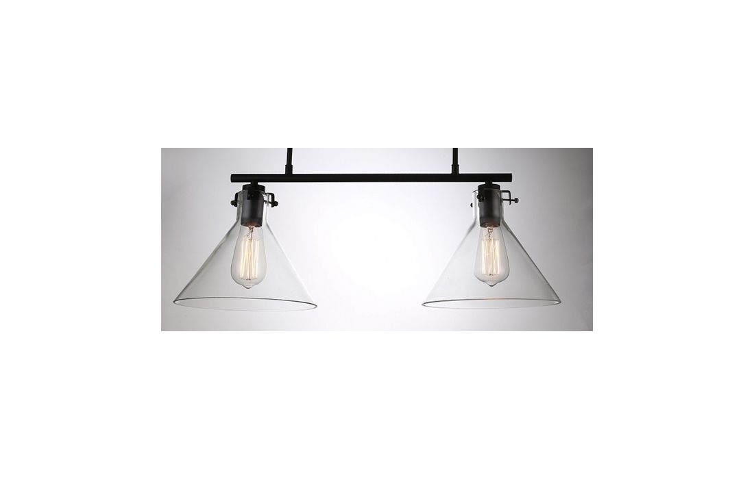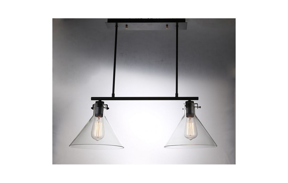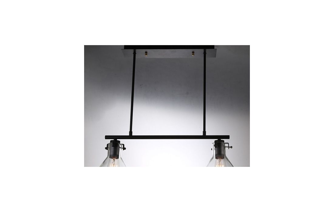 Modern ceiling lamp, with structure in black metal and clear glass.