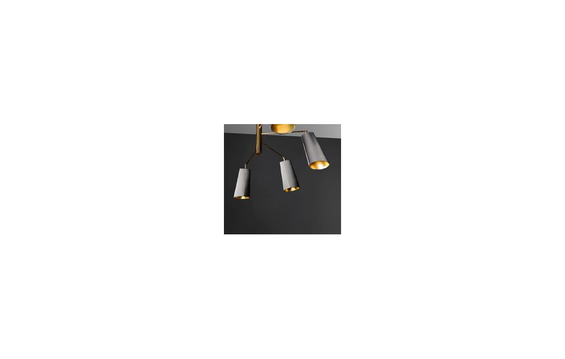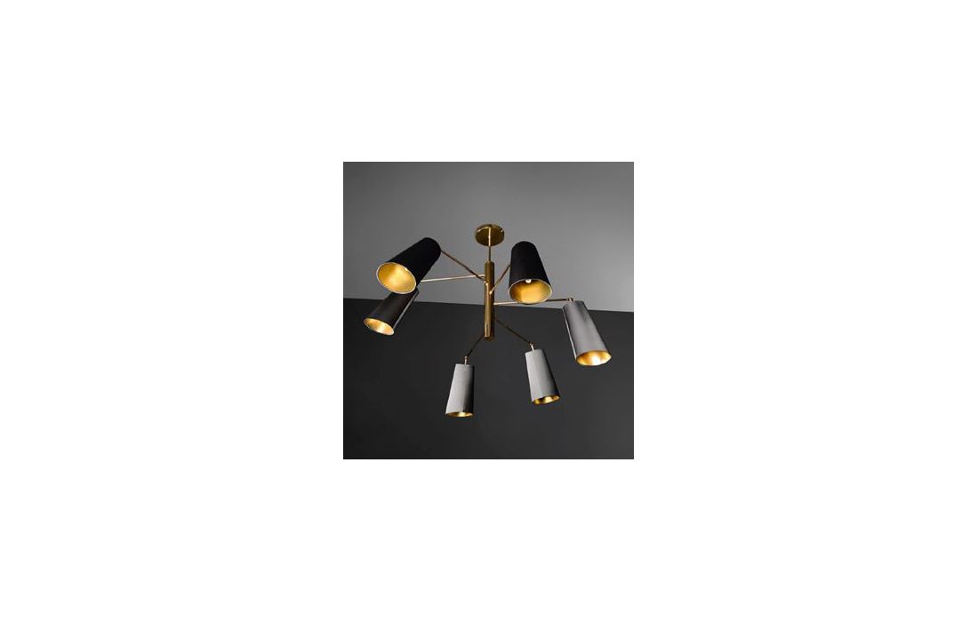 Ceiling lamp with structure in silver or gold metal with black table lamp and interior gold, white and interior silver or all white or all black.