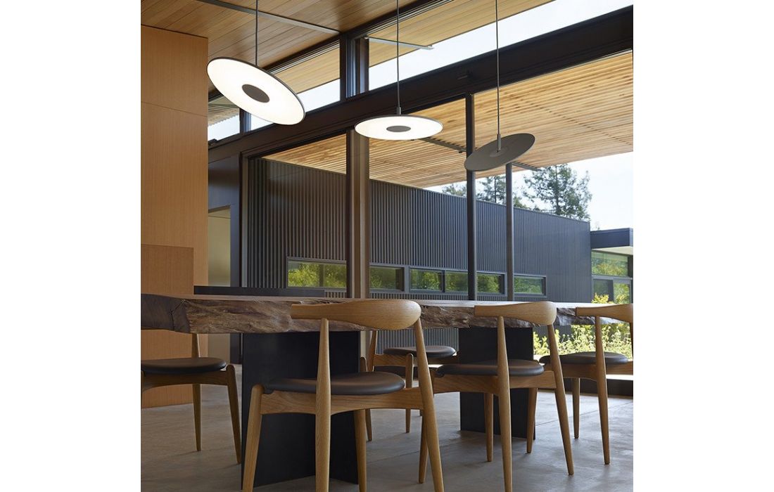 Ceiling lamp with structure in white metal or graphite metal.