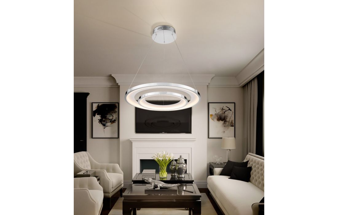 Large LED metal lamp with chrome and matt white finish. Adjustable height. Acrylic diffuser.