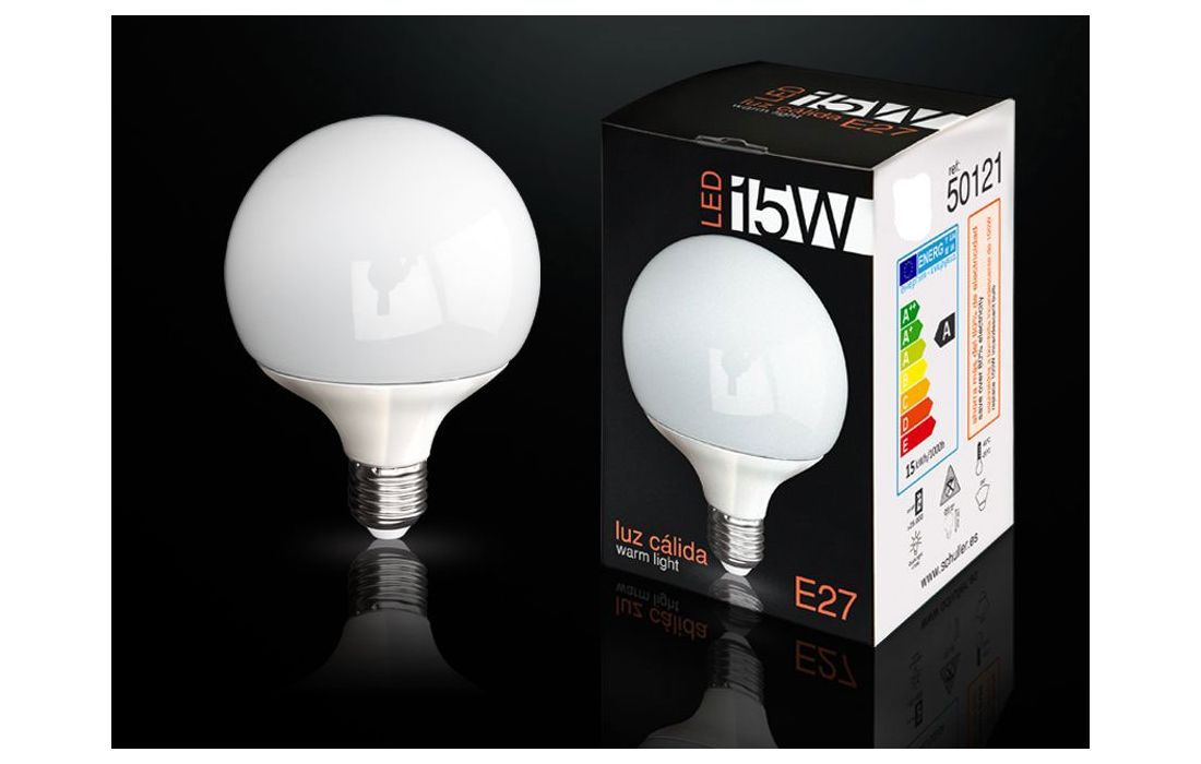15W opaline globe LED lamp. Warm light equivalent to 100W incandescent. 1,200 lumens. 3000K. 200 ° light beam. For E27 socket.