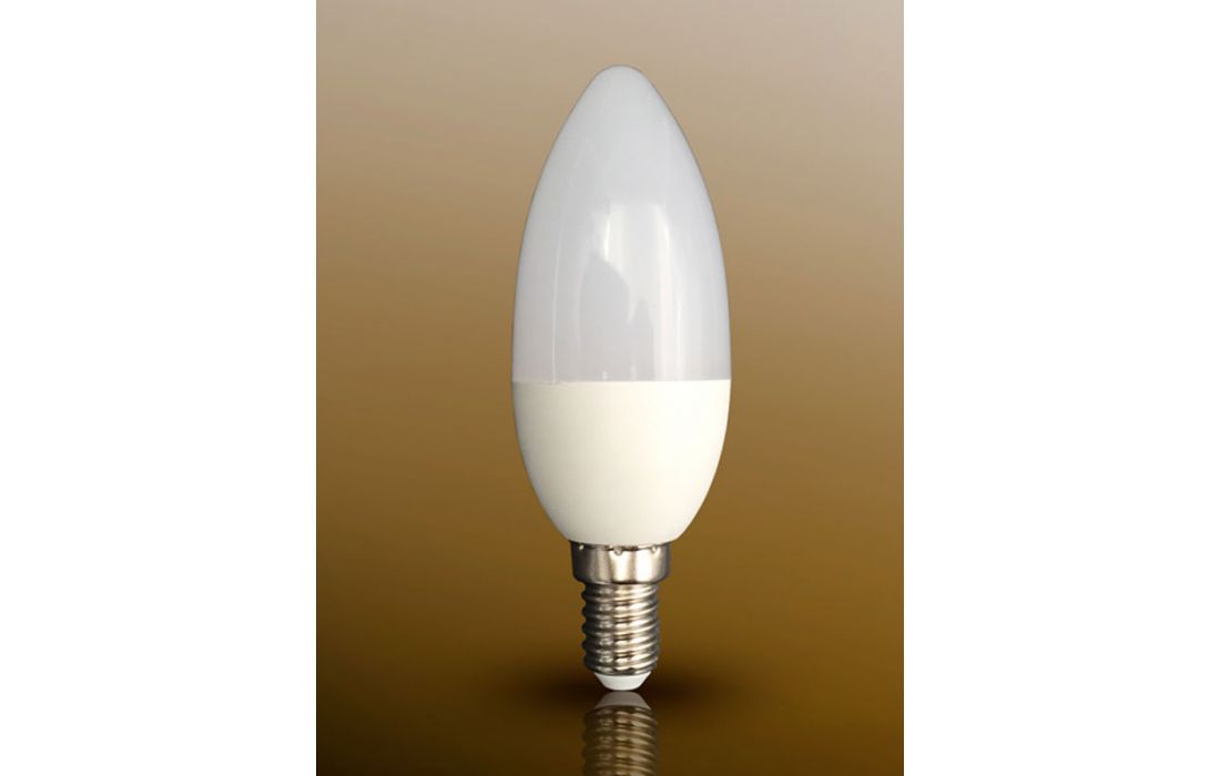 7W ADJUSTABLE LED opaline candle lamp. 3000K warm light. 560 lumens, equivalent to 60W incandescent. 180 ° light beam. For E14 socket.