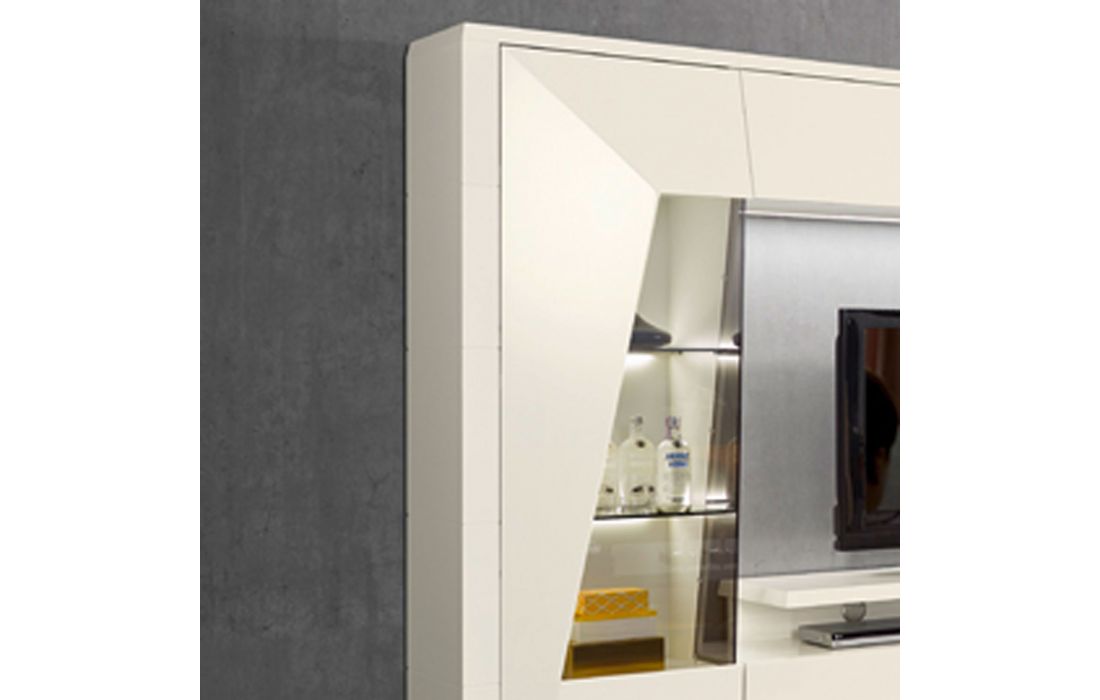 Modern bookcase with a different design. It can be finished in lacquered high-gloss, matt or wood sheet