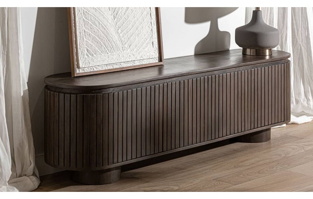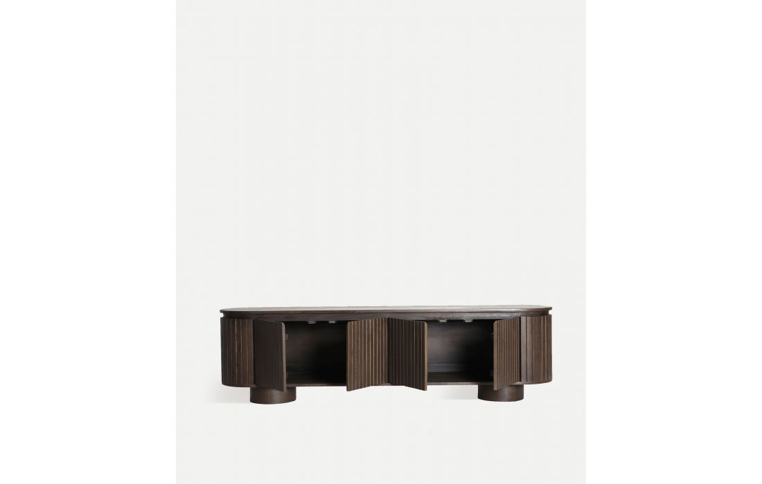 The KOLGA TV stand is the missing piece in your living room. Made entirely of wood, this piece of furniture is not just a support for your TV, but also an element that brings warmth and style to your space. Ideal to complement sideboards or as part of your dining furniture set.