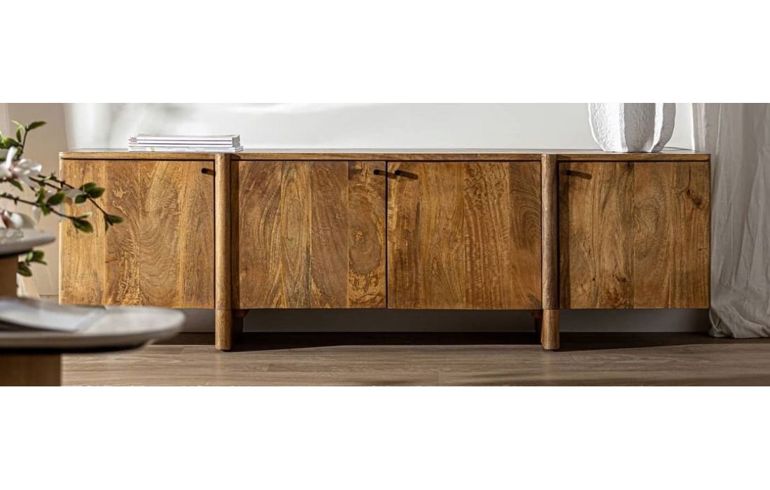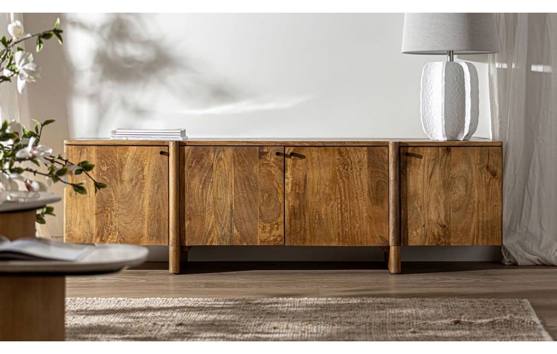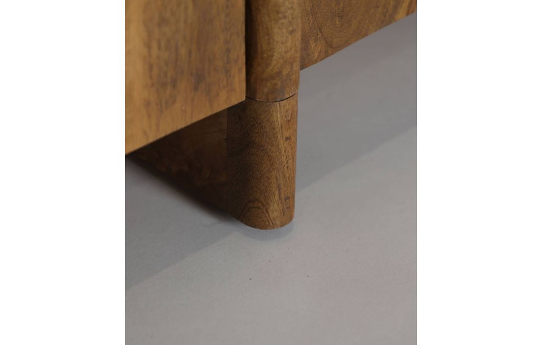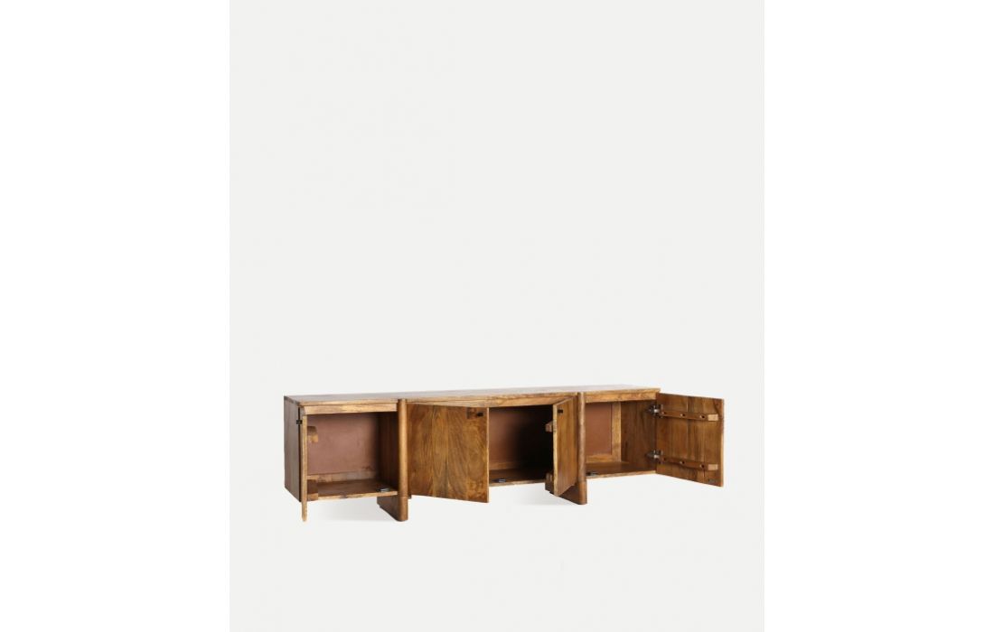 A minimalist piece in a natural color. Made of wood, this removable piece of furniture is an ideal stand for your TV and brings a touch of natural elegance to your space.