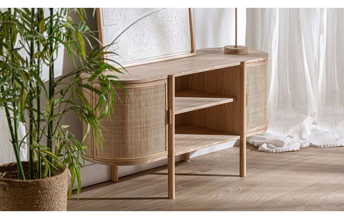 This TV stand is a stylish and functional addition to your living room.It's a medium-sized TV stand that offers space for your TV and other devices.Its minimalist design easily adapts to different decorative styles.