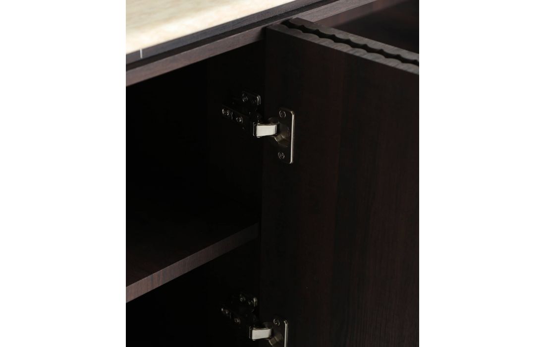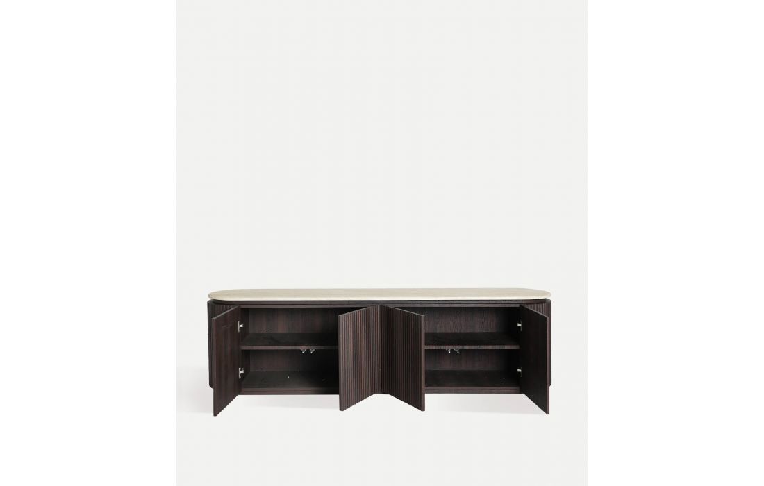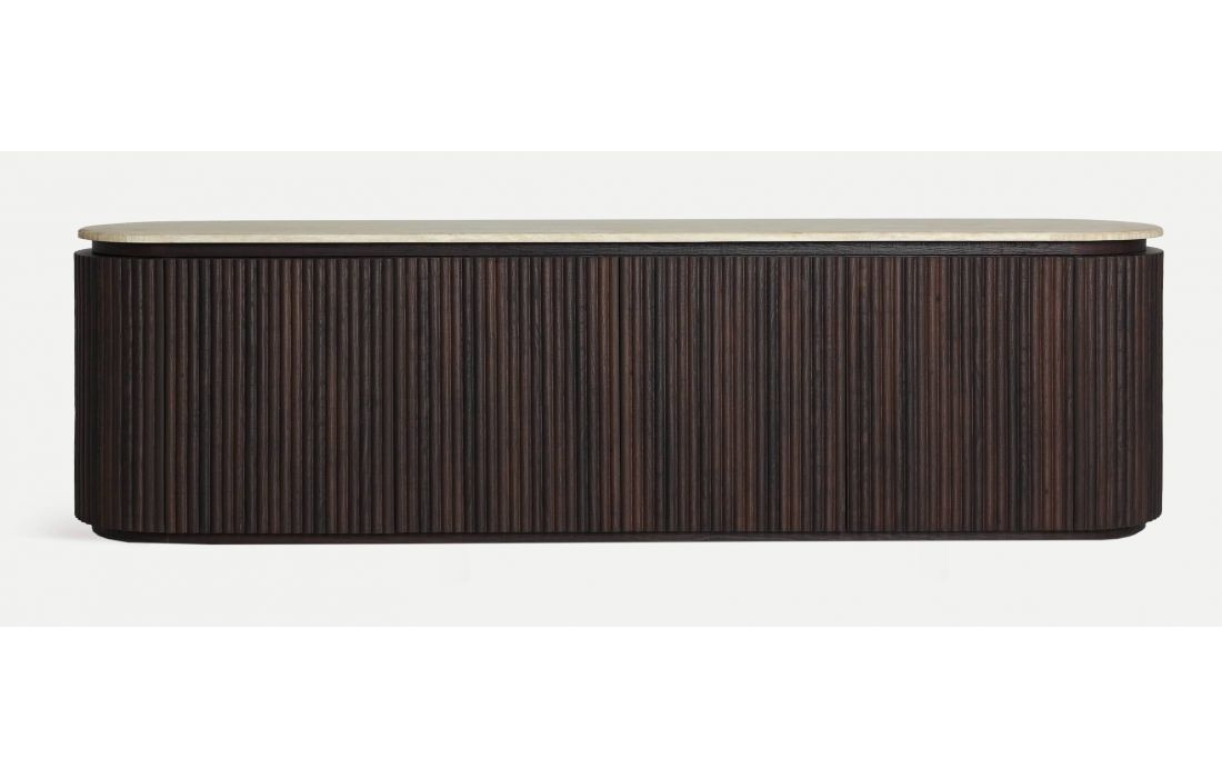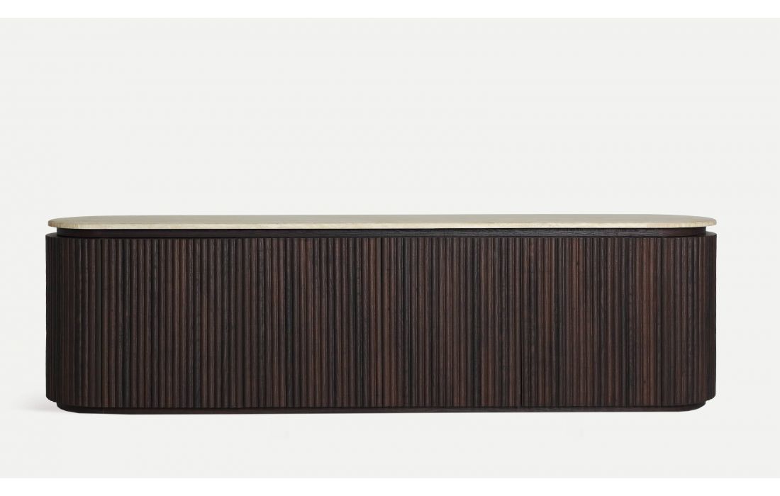 The BASE TV Verona stands out for its elegant and functional design, featuring a ribbed dark wood texture and a sophisticated synthetic marble top. Its refined style makes it the perfect choice to complement contemporary spaces with a touch of distinction.