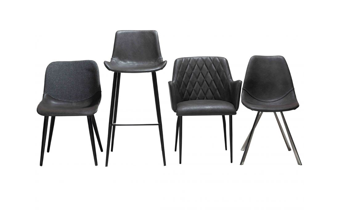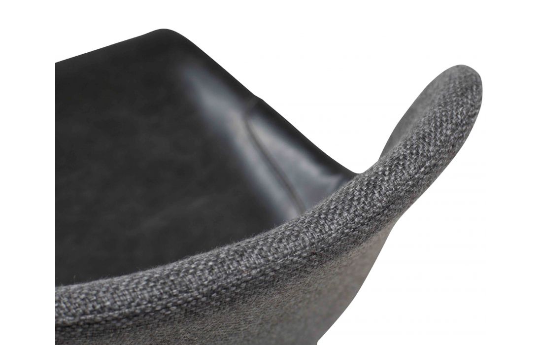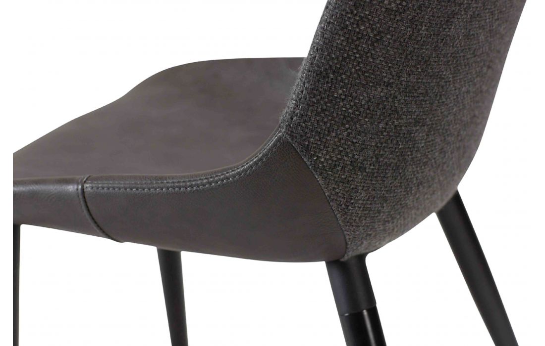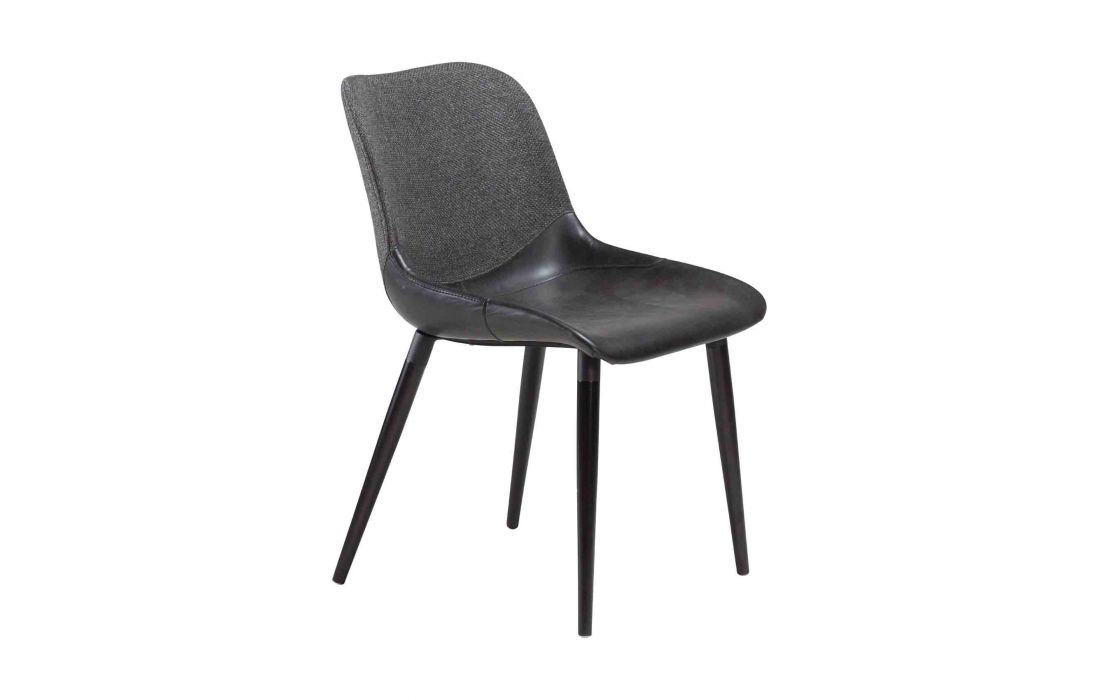Chair with upholstered in vintage synthetic leather mix and gray fabric with black metal legs
