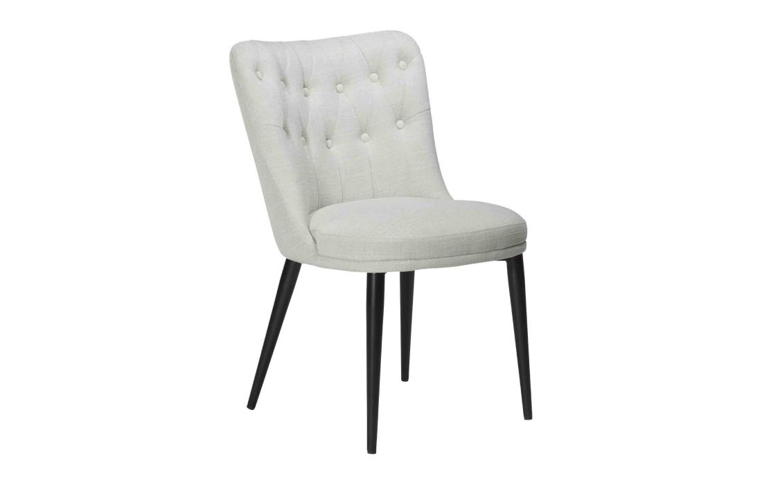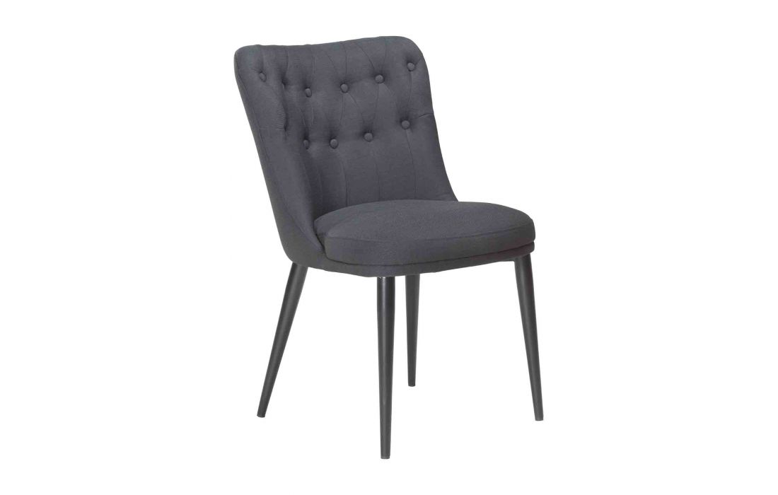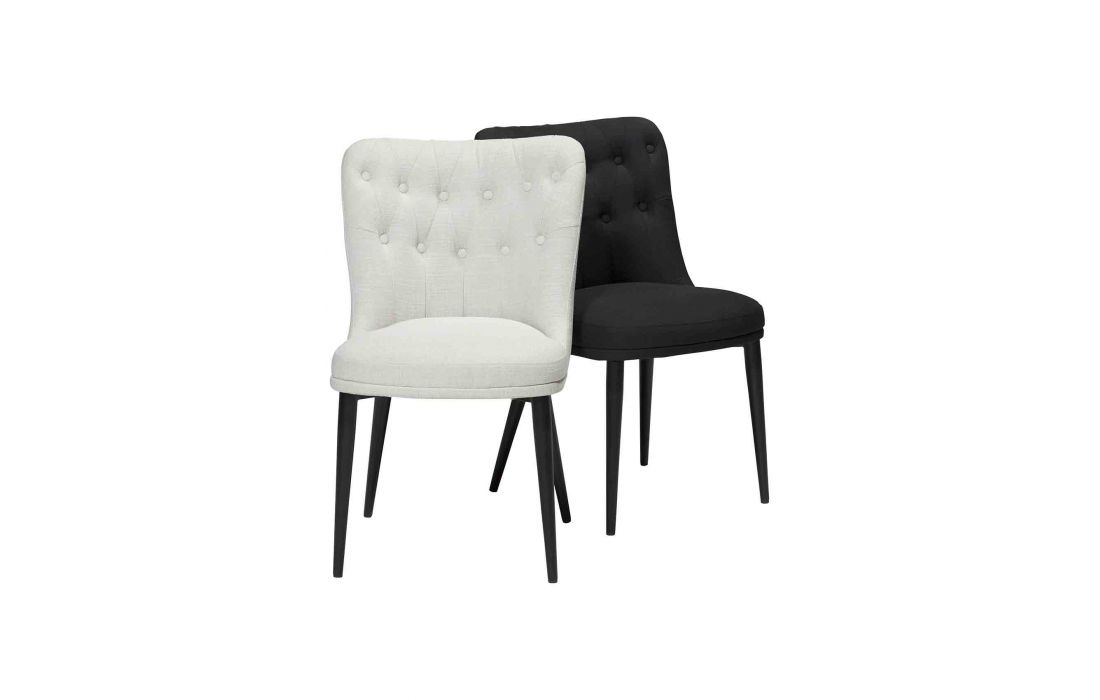 Chair with upholstered in black fabric or beige with black metal feet