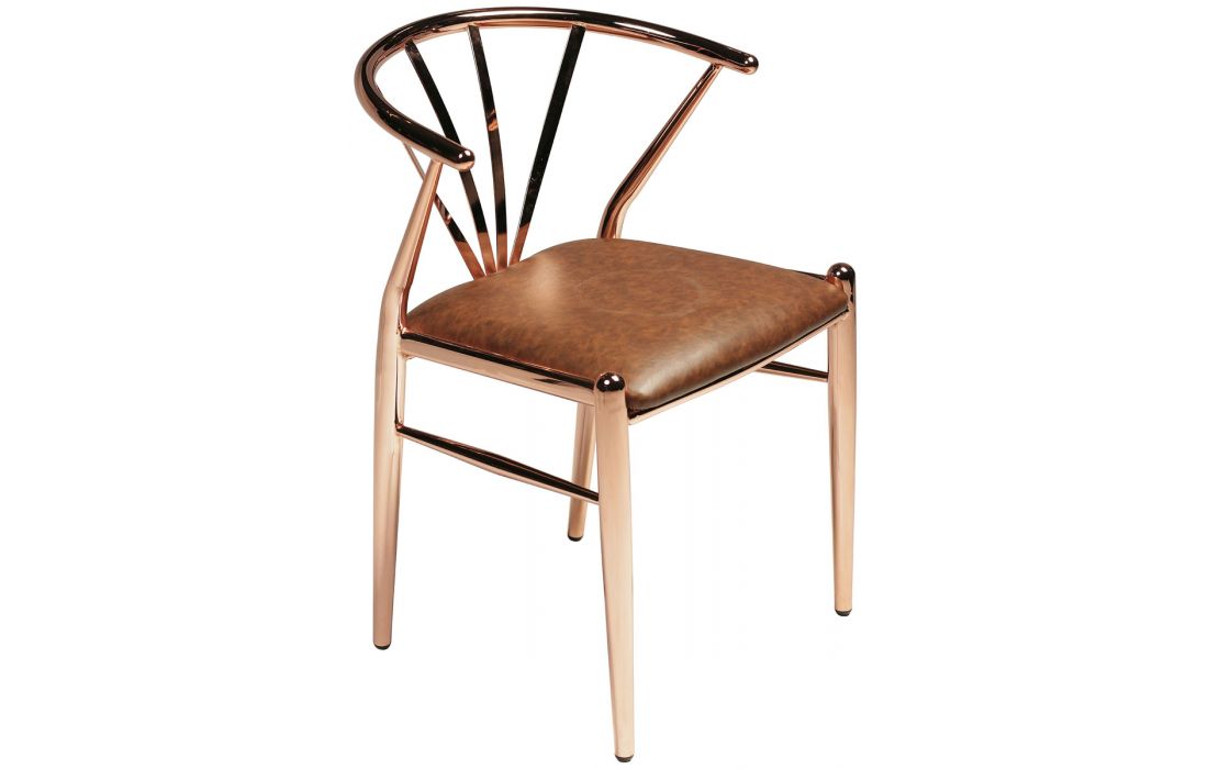 Chair with structure in metal covers and upholstery in synthetic brown leather