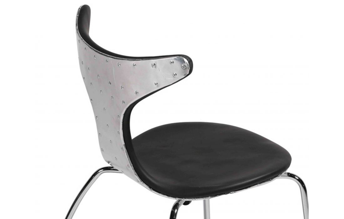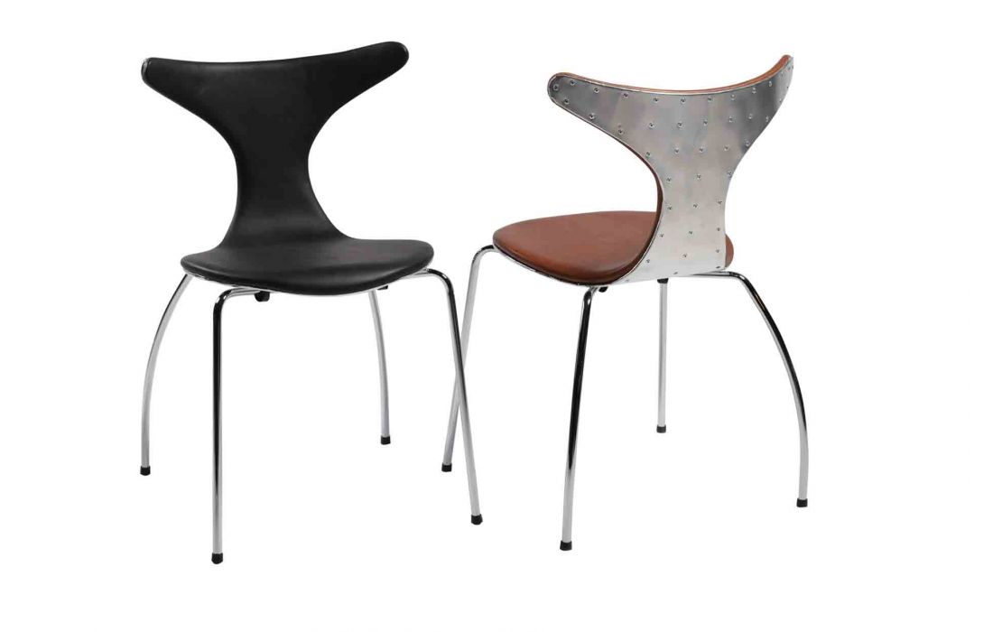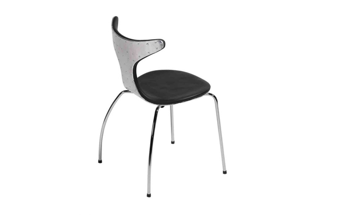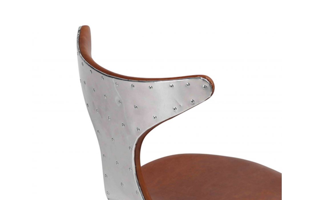 Chair with upholstered in genuine leather light brown or black color with chrome metal legs and back aluminum