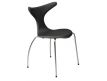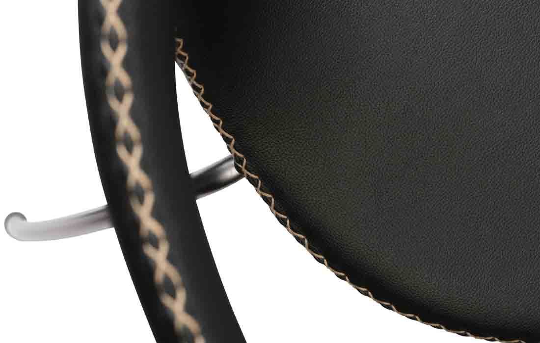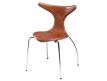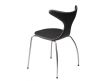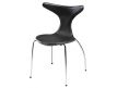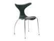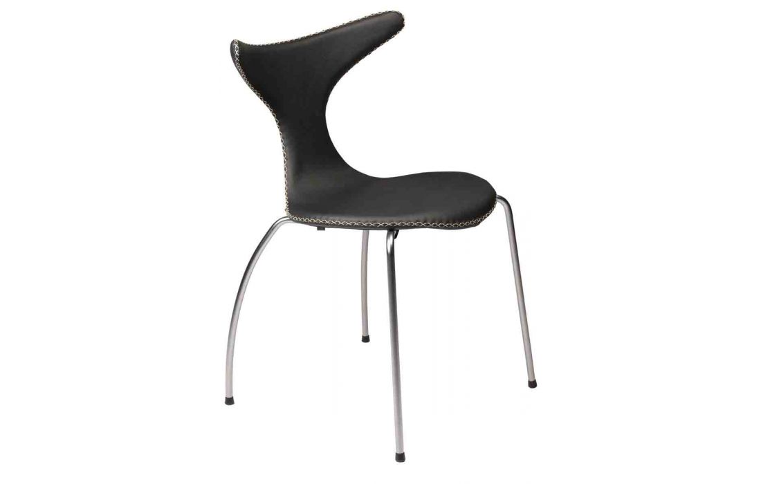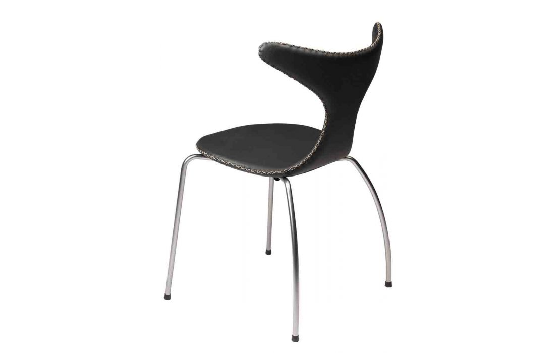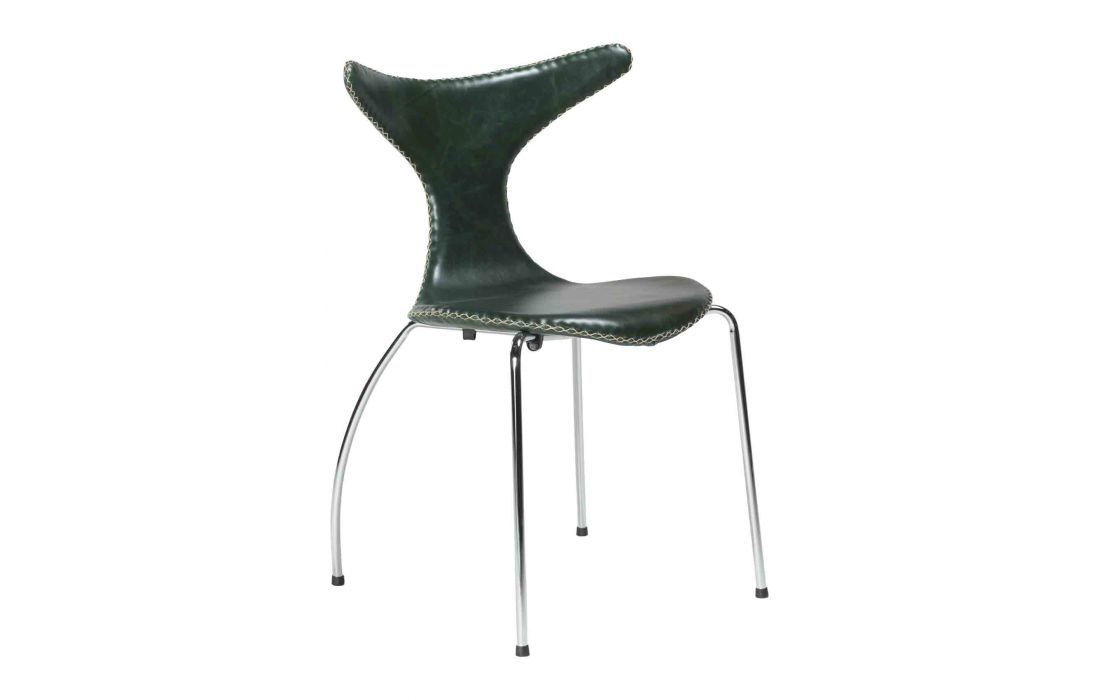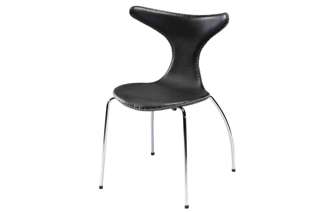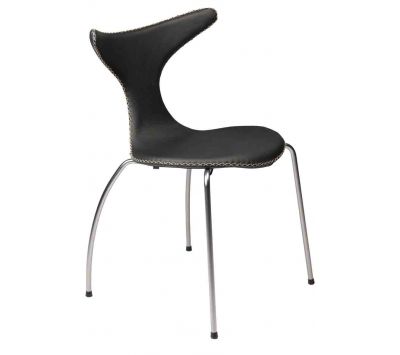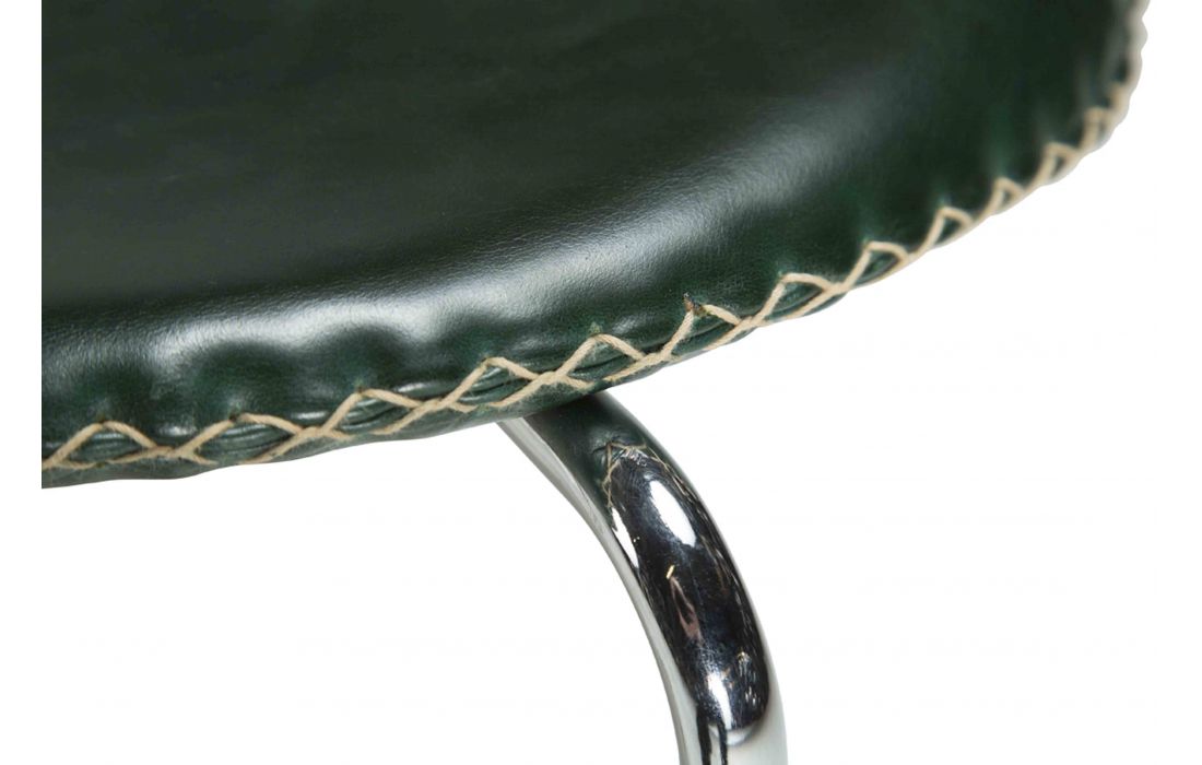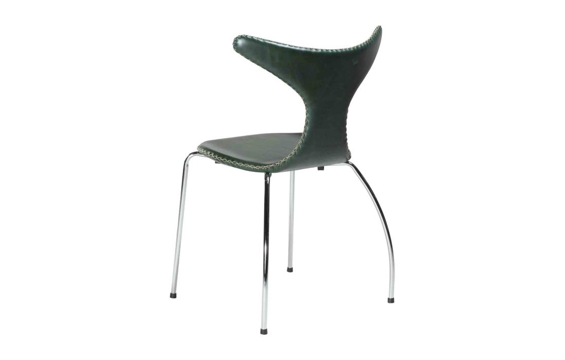 Chair with upholstered in genuine leather black color, light green or brown with legs in chromed metal