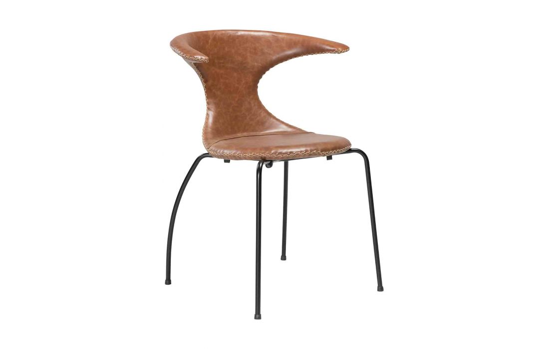 Chair with upholstered in green or light brown genuine leather with legs in chromed metal