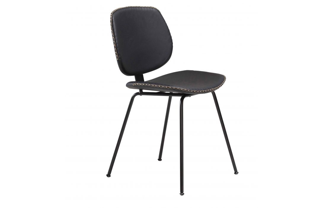 Chair with padded synthetic leather brown or black and feet in black metal
