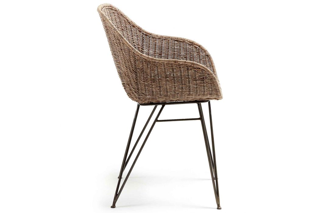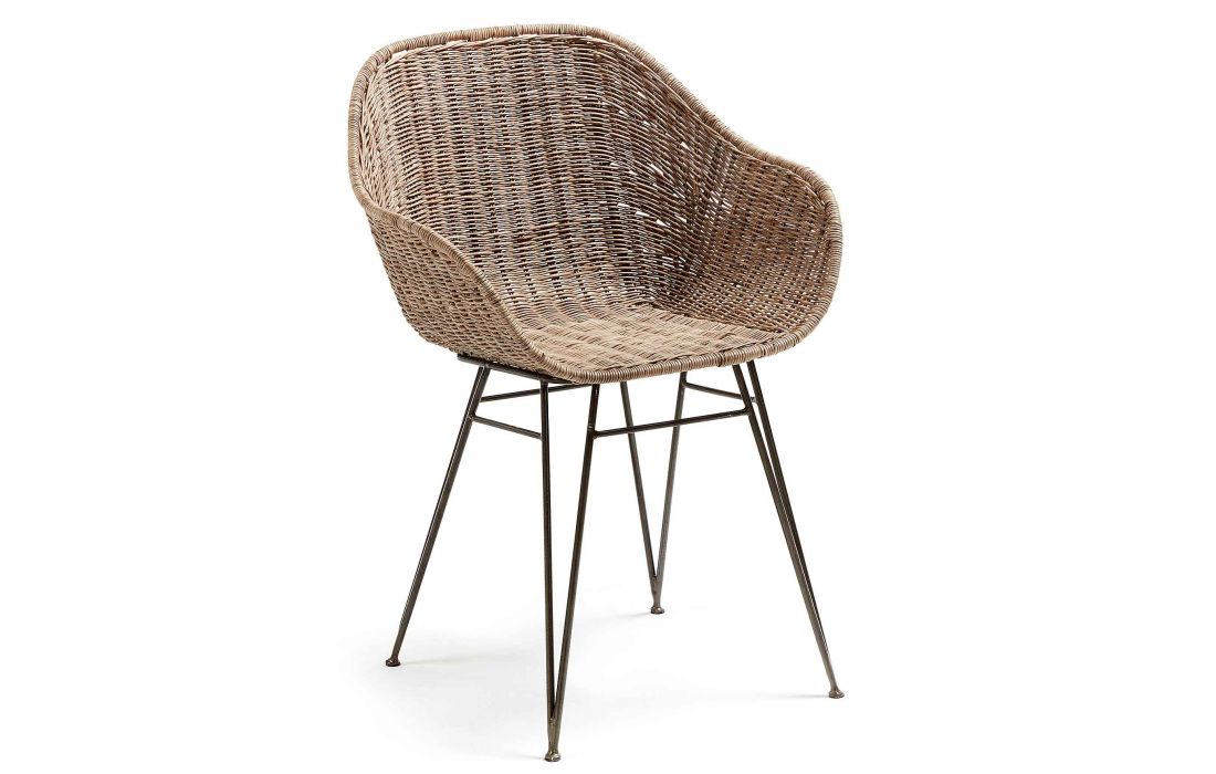 Chair in natural wicker with metal feet.