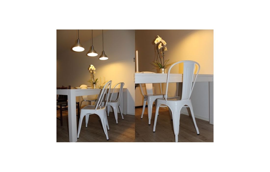 Chair with steel structure with epoxy finish of yellow, white, black, red or steel color.