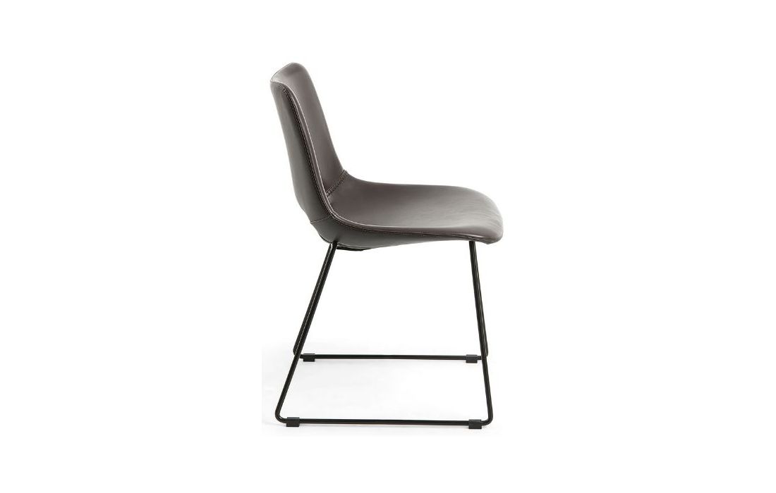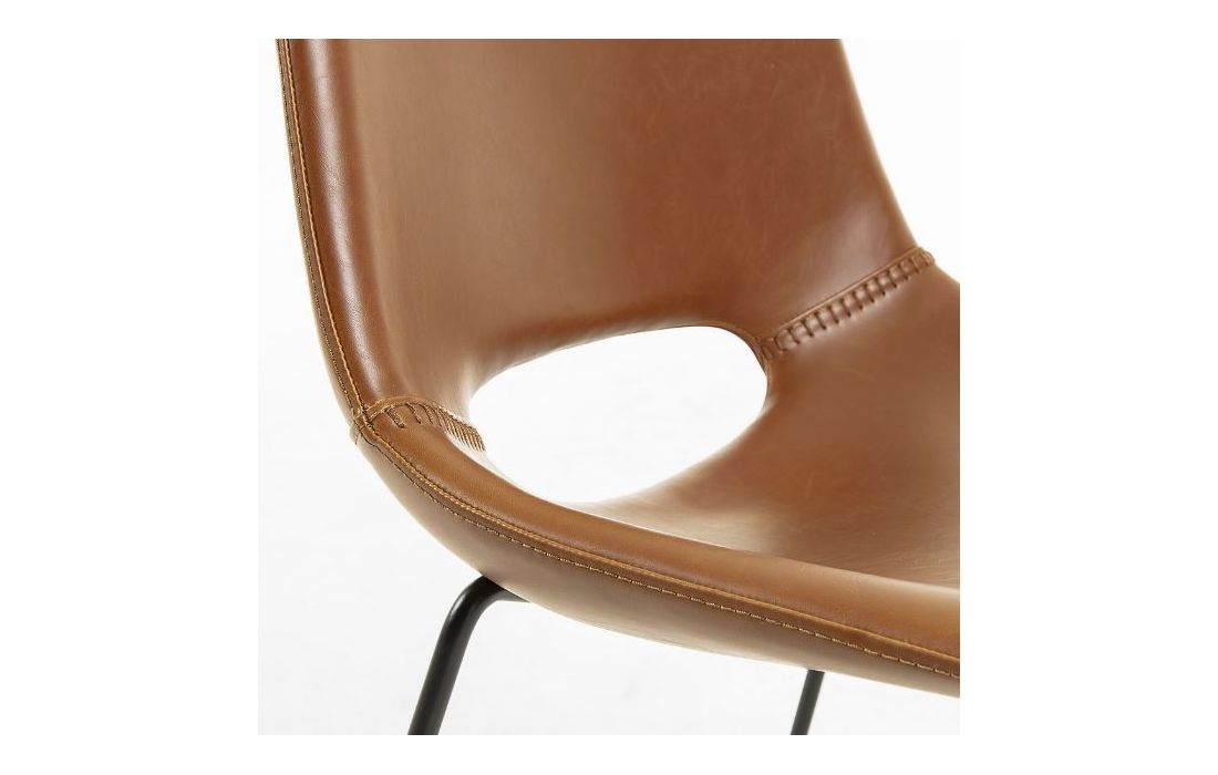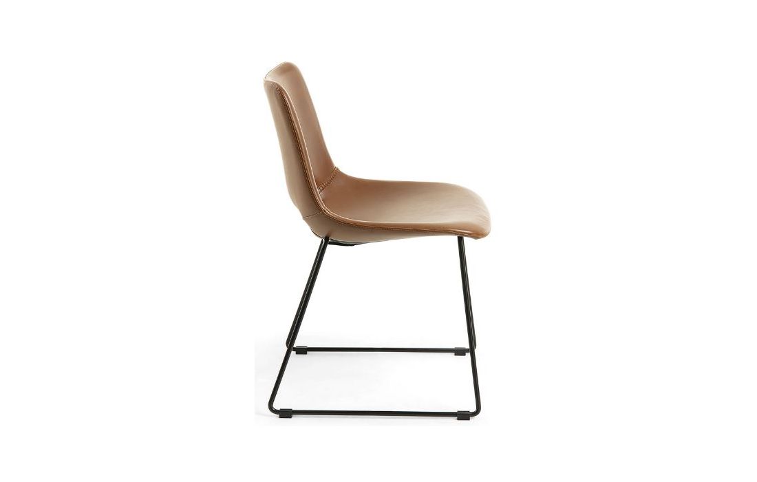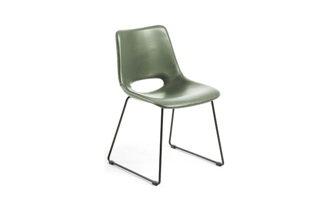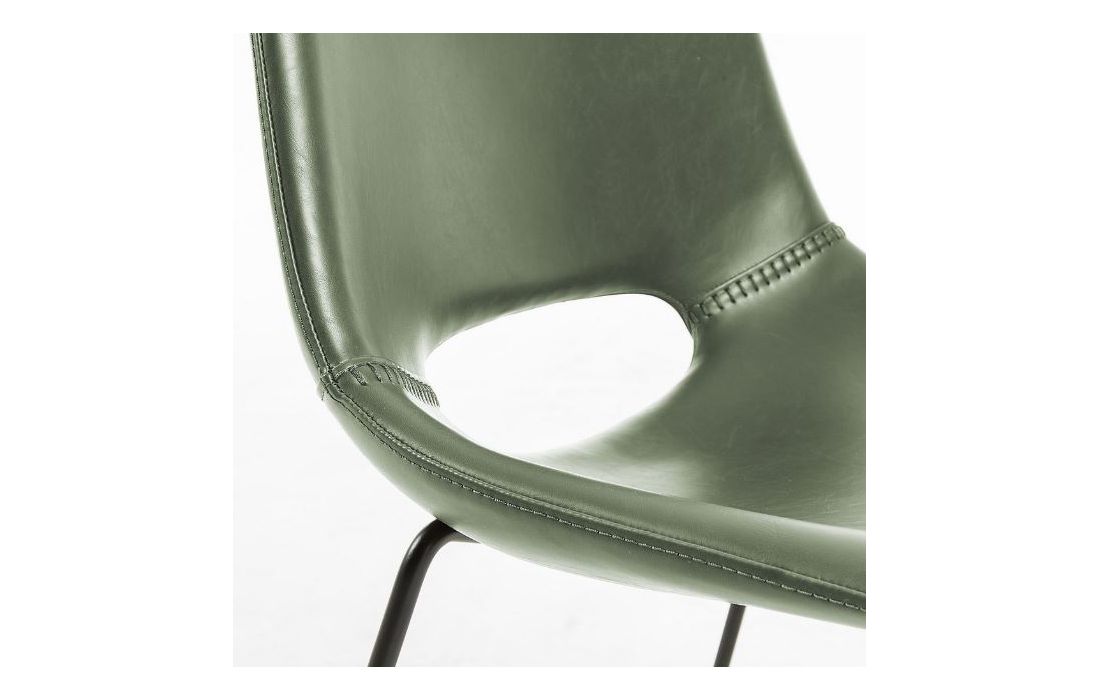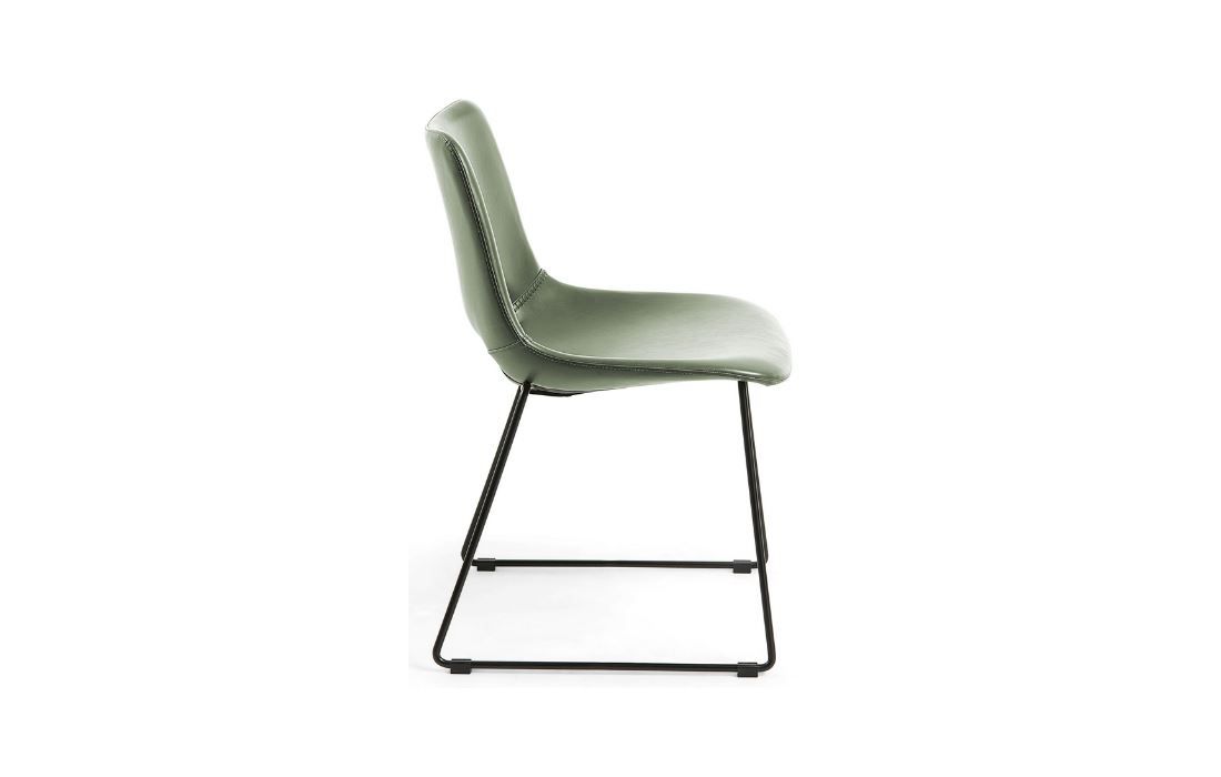 Chair with black metal frame and upholstery in green, brown or light brown synthetic leather.