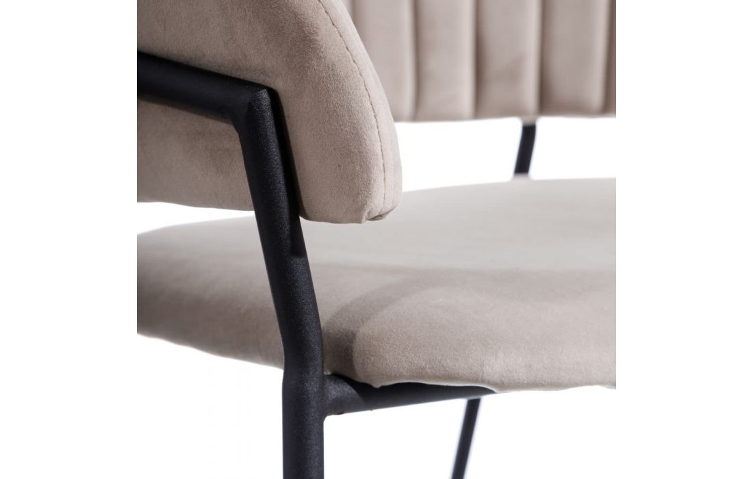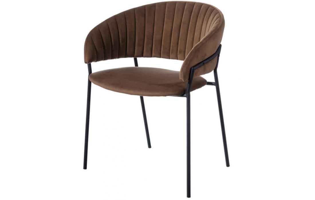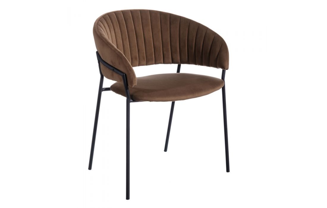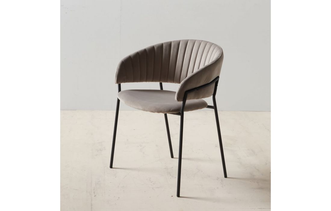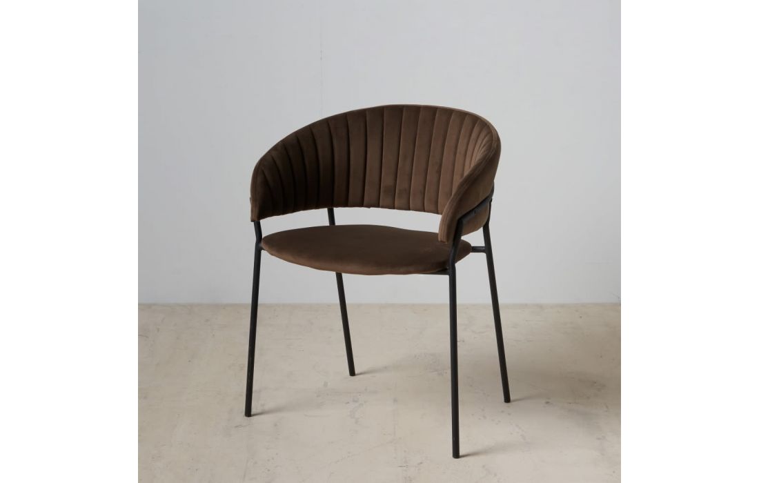 Chair with velvet upholstery with 2 colors available, beige and brown with black steel feet