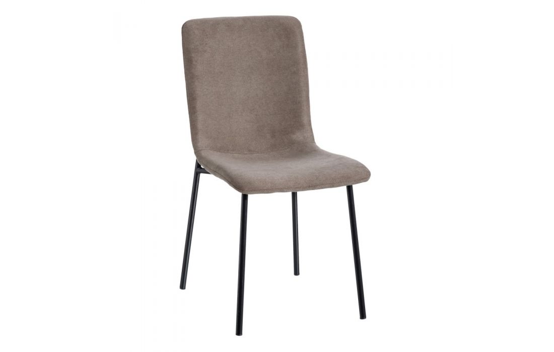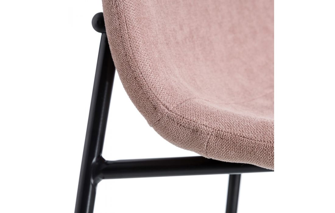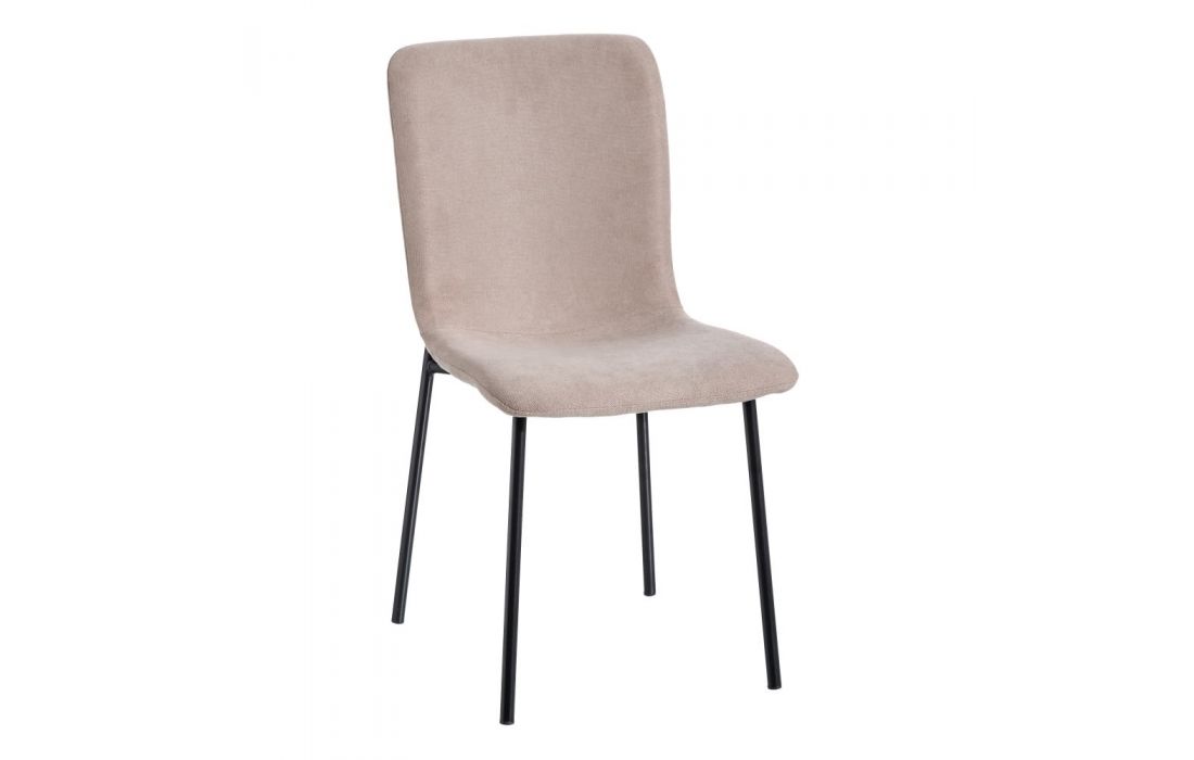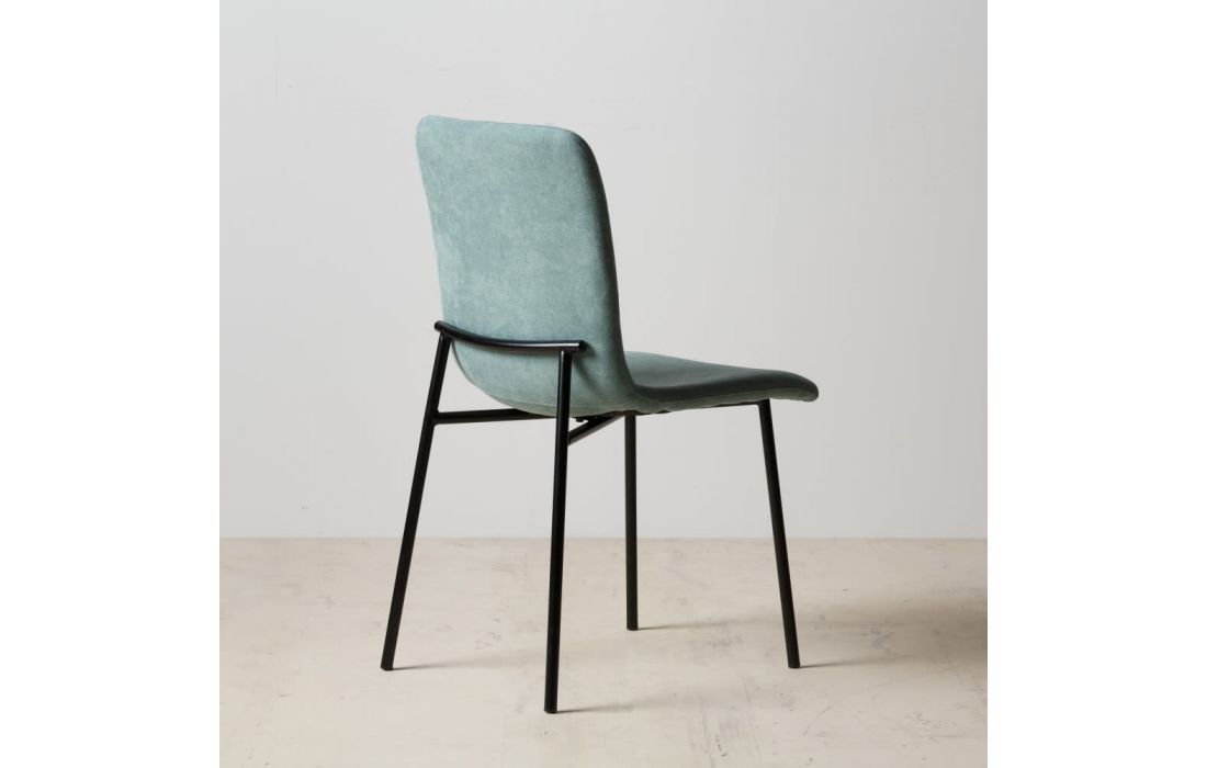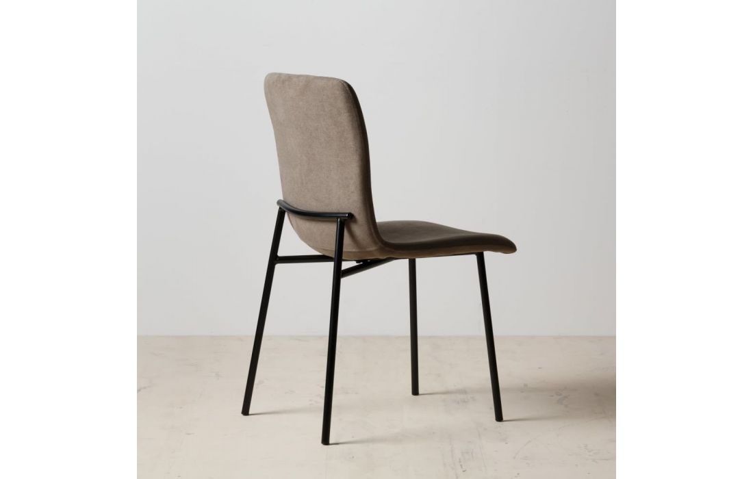 Chair with velvet upholstery with 2 colors available, brown, green, pink and beige with black steel feet.