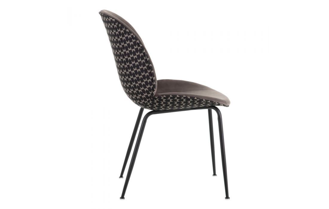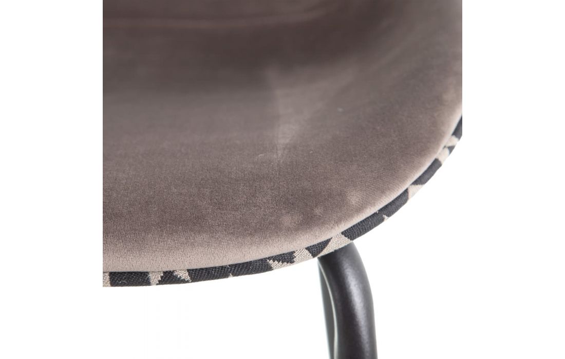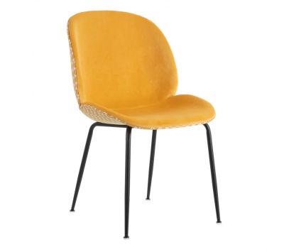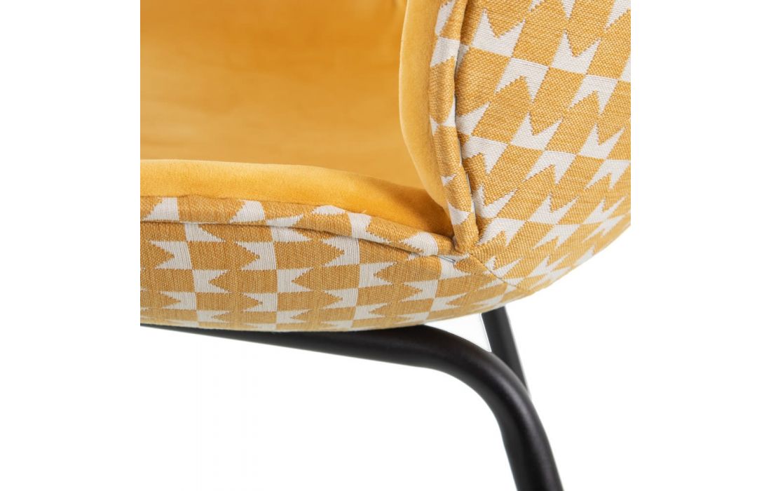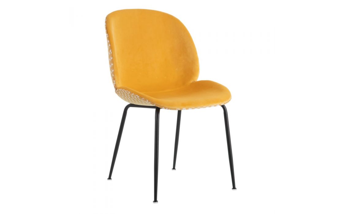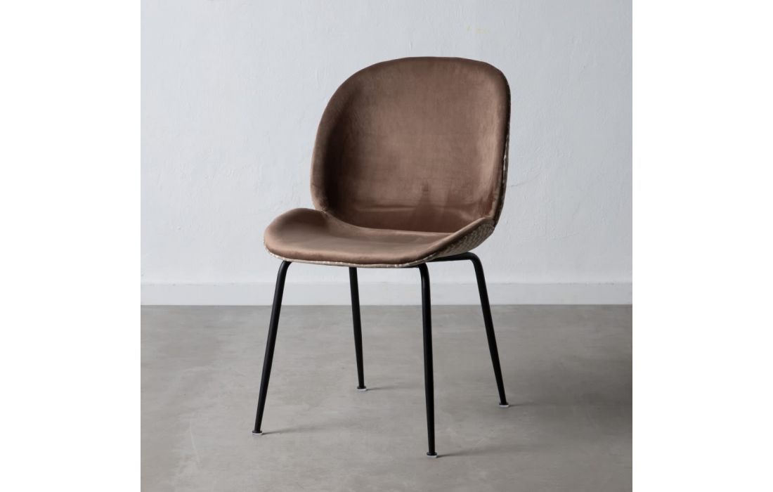 Chair with velvet upholstery with 3 colors available, dark grey, yellow and brown with black steel feet.