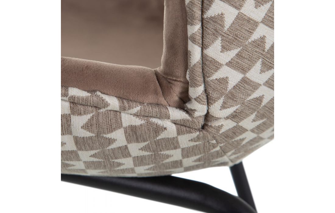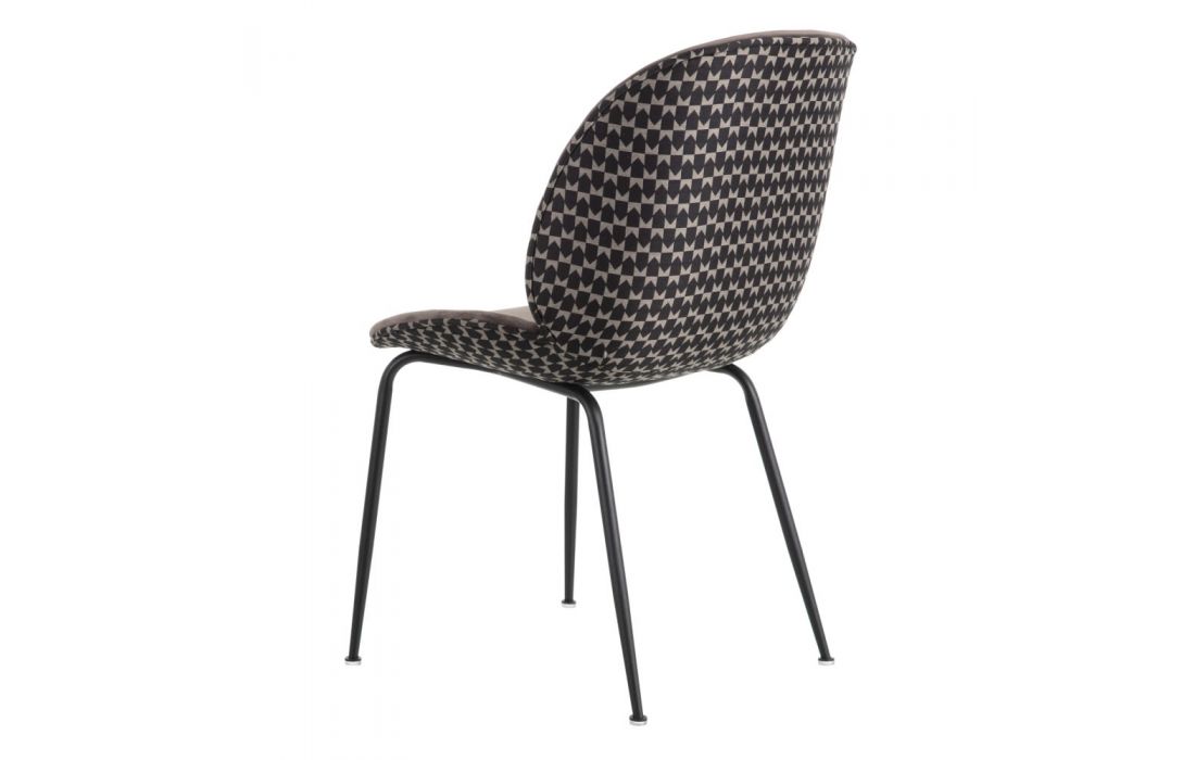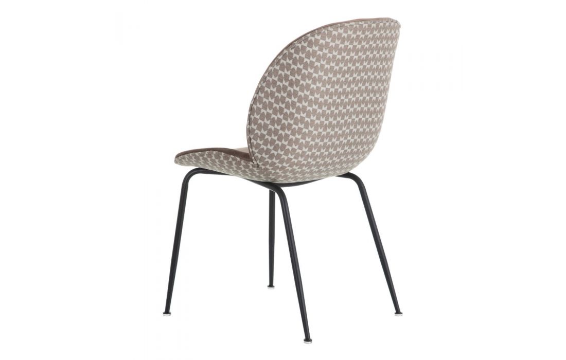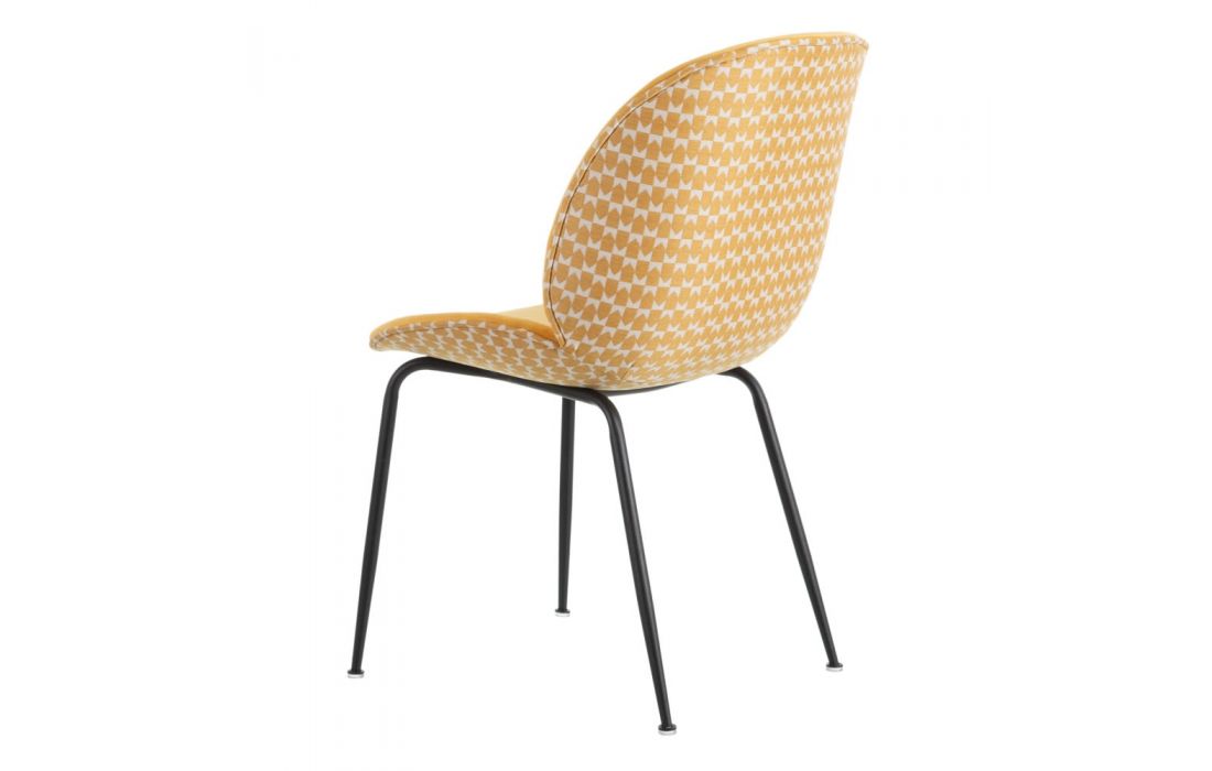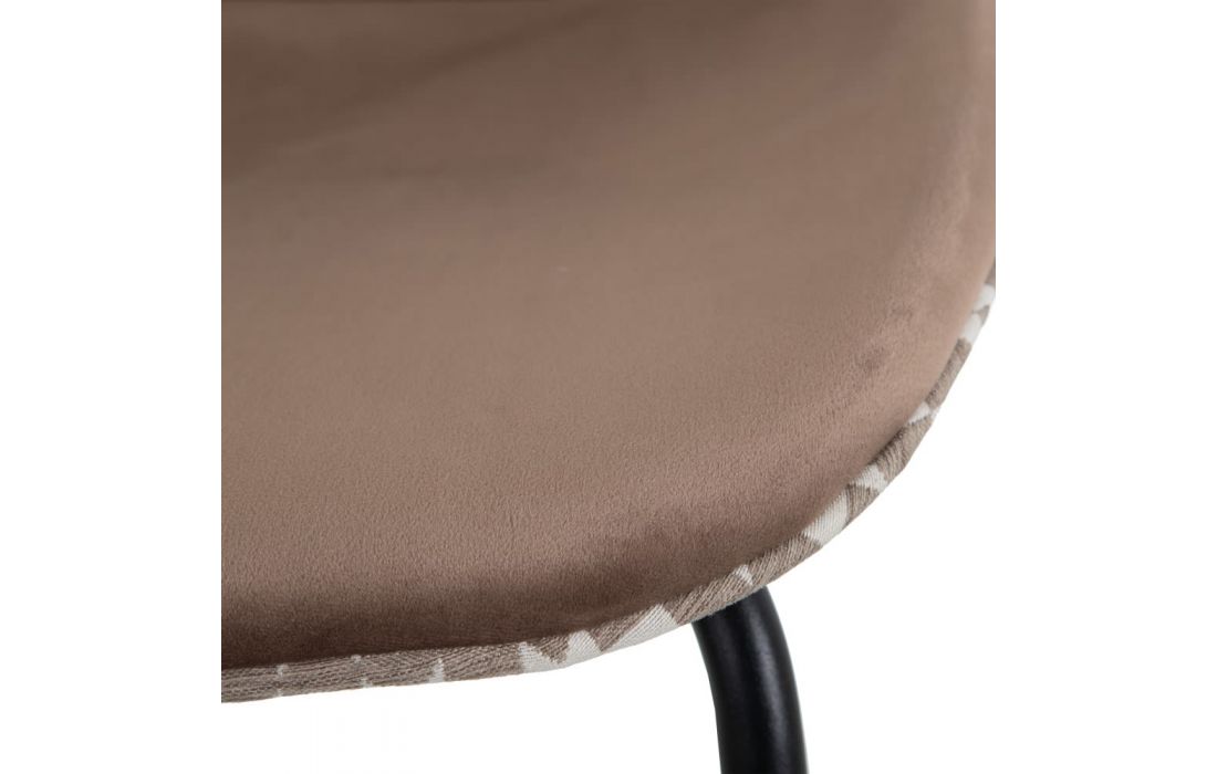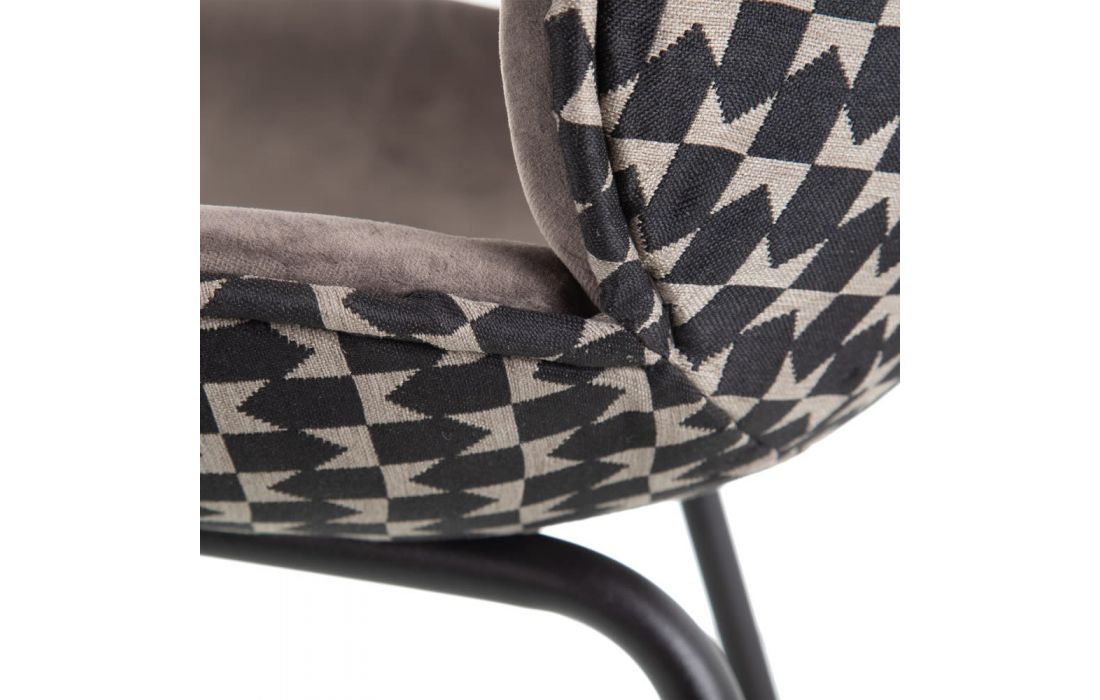 Chair with velvet upholstery with 3 colors available, dark grey, yellow and brown with black steel feet.
