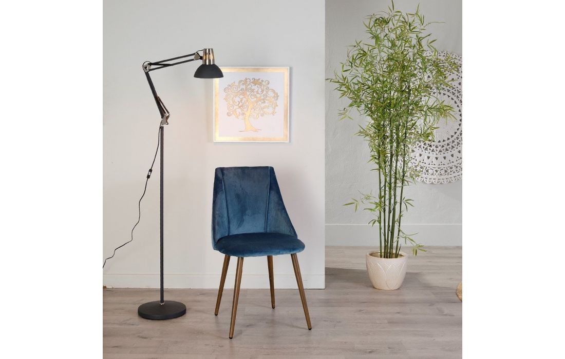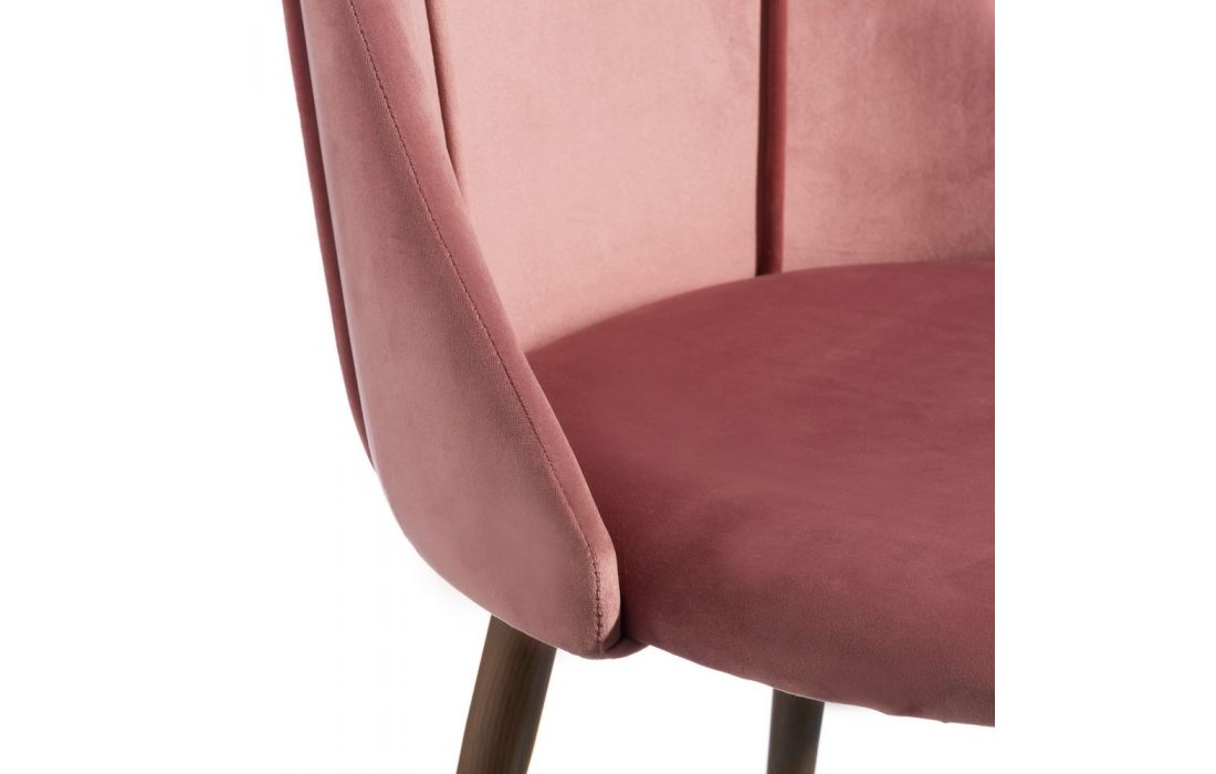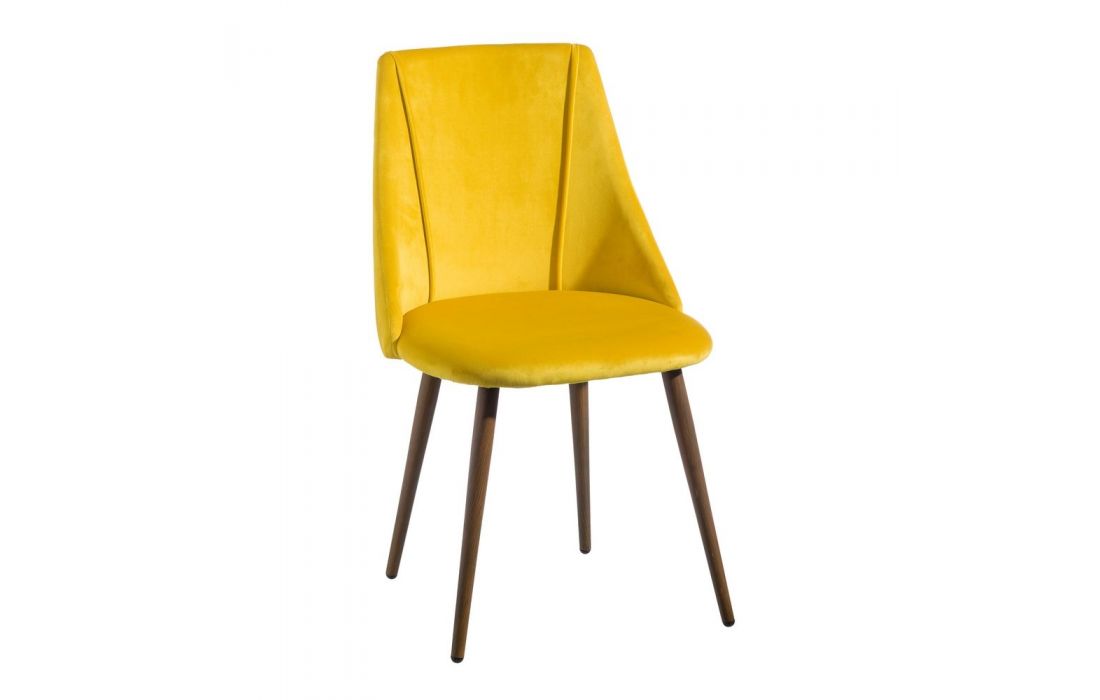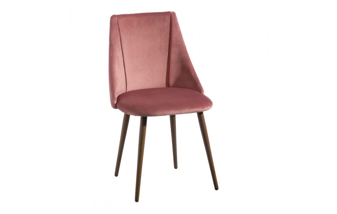 Chair with velvet upholstery with 4 colors available, blue, green, yellow and pink coral, with steel feet brown color.