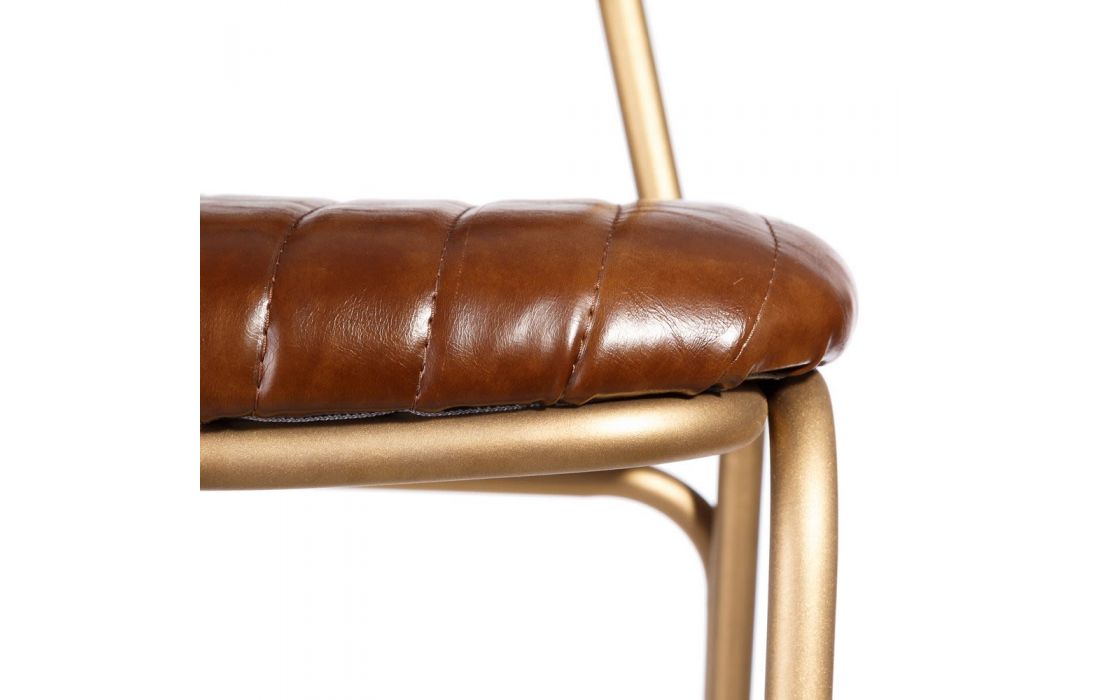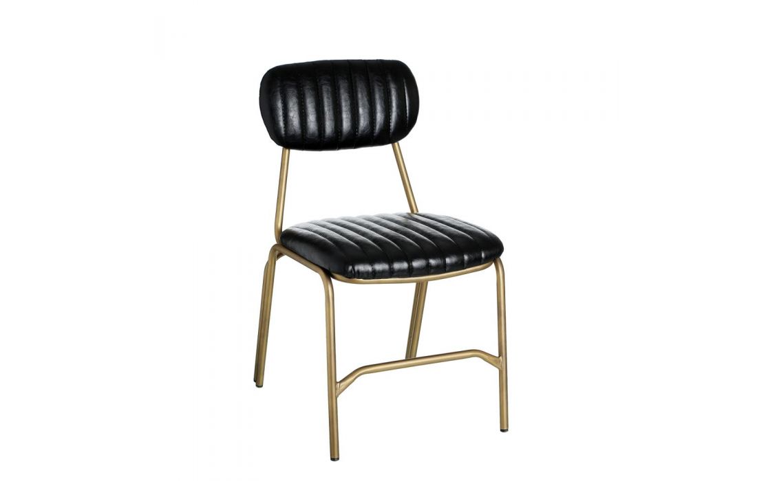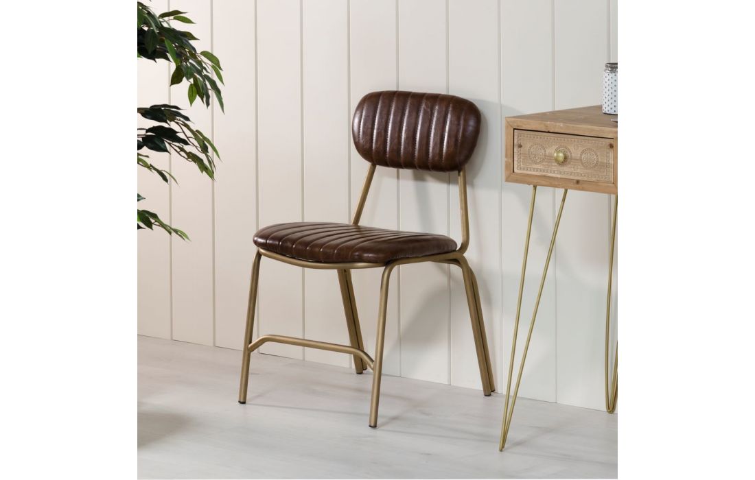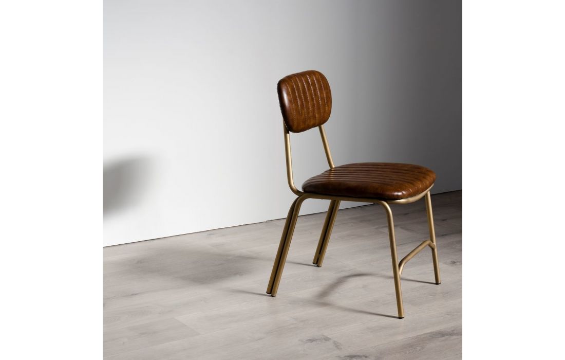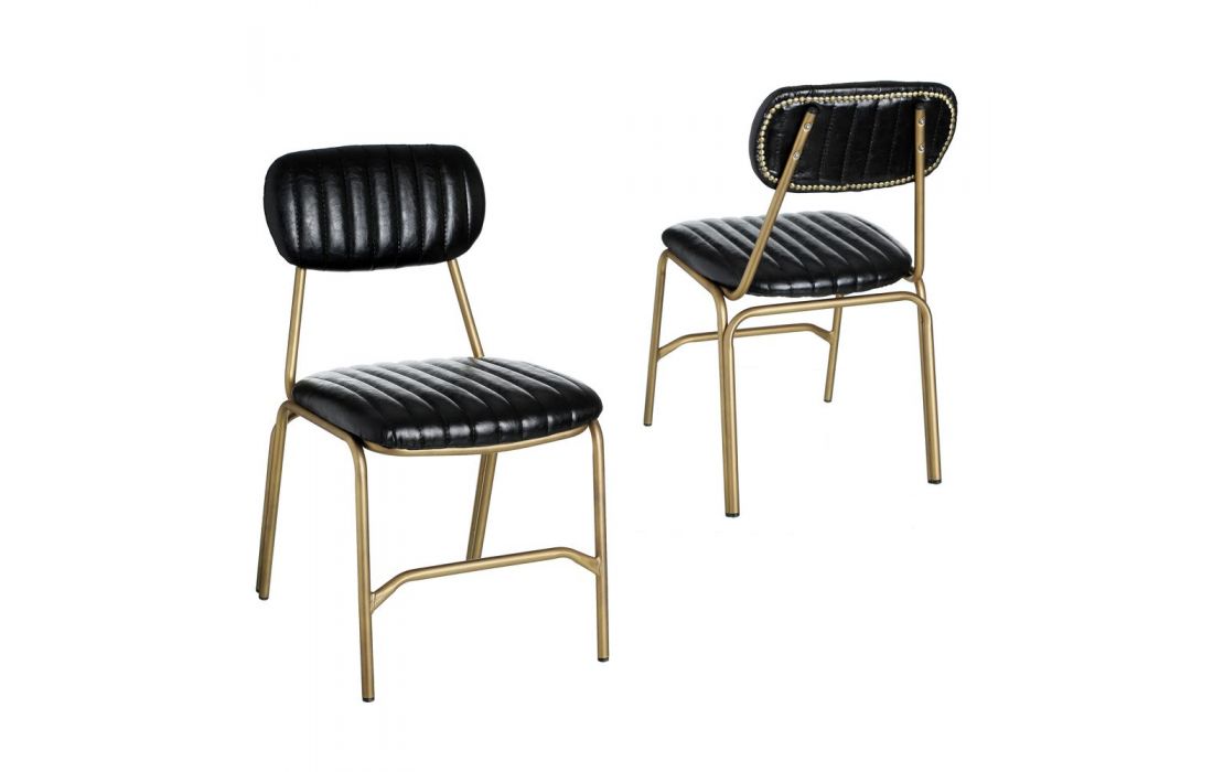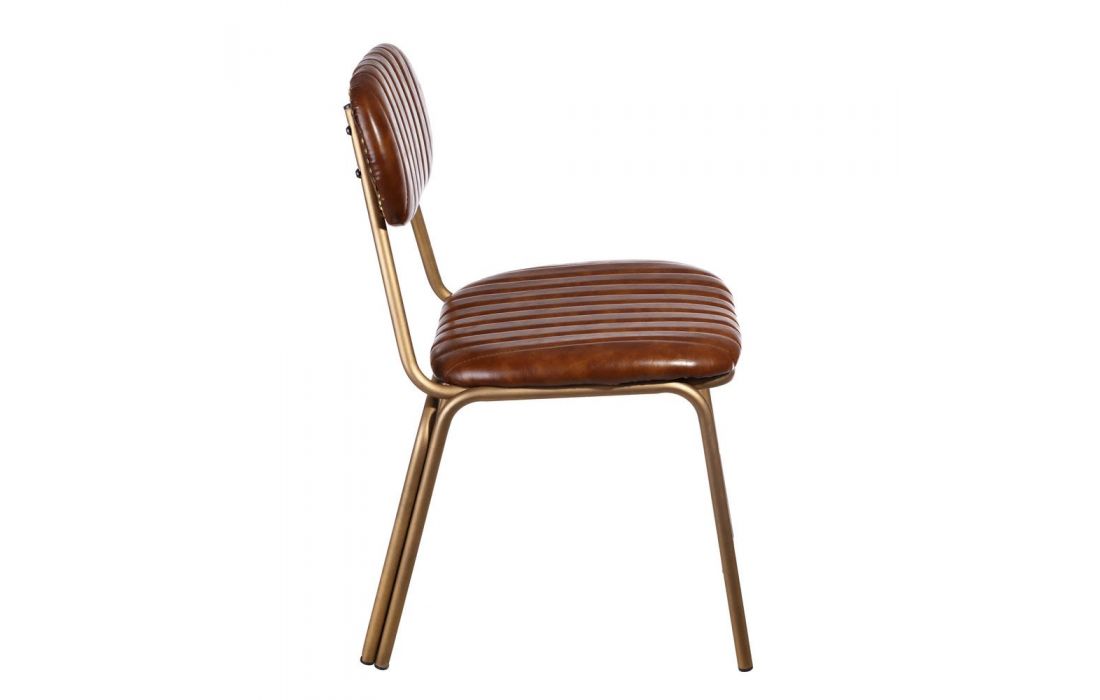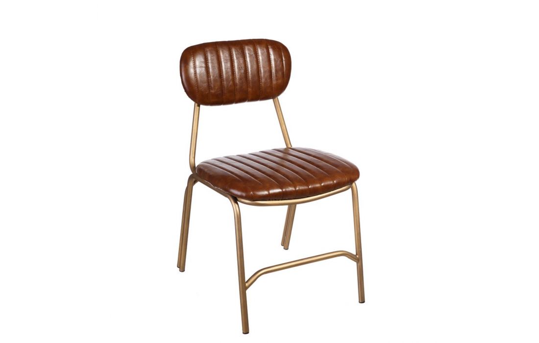 Chair with upholstered in synthetic leather with 2 colors available, brown and black with metal feet in golden color.